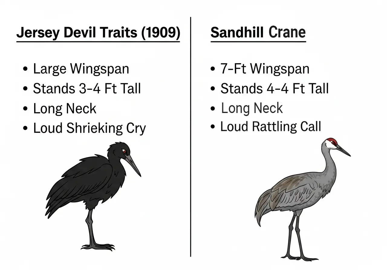 The most widely accepted scientific theory is that the 1909 panic was a case of mass hysteria fueled by the misidentification of a real animal. The prime suspect is the Sandhill Crane. These are enormous birds that can stand nearly four feet tall with a wingspan of over seven feet. They are not typically native to the Pine Barrens, but during migration or if blown off course, their appearance would be a shocking and unfamiliar sight. They have a loud, rattling cry that could easily be interpreted as a scream, and their large, shadowy form in flight during the winter twilight could certainly be mistaken for a monster by an alarmed observer. This theory proposes that a few initial, genuine sightings of a displaced crane, filtered through the lens of the existing Leeds Devil folklore, were sensationalized by newspapers, creating a feedback loop of fear and suggestion that led to the week-long panic.