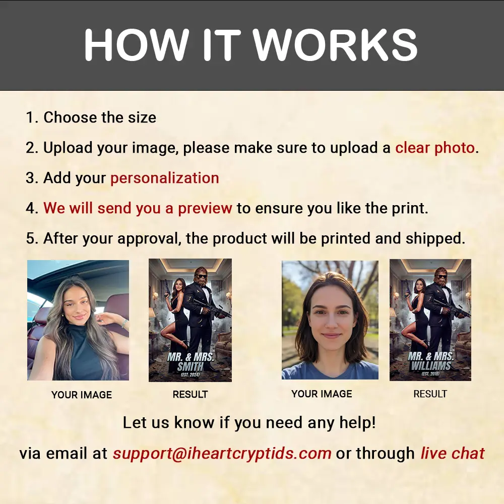 Wrap yourselves in thrilling comfort with our Custom Face Bigfoot Couple Blanket, a personalized tribute to your action-packed romance. This unique blanket is an unforgettable anniversary or Valentine’s Day gift for the couple whose love is truly explosive, offering both custom face integration and custom text at the bottom.