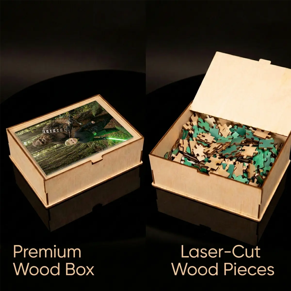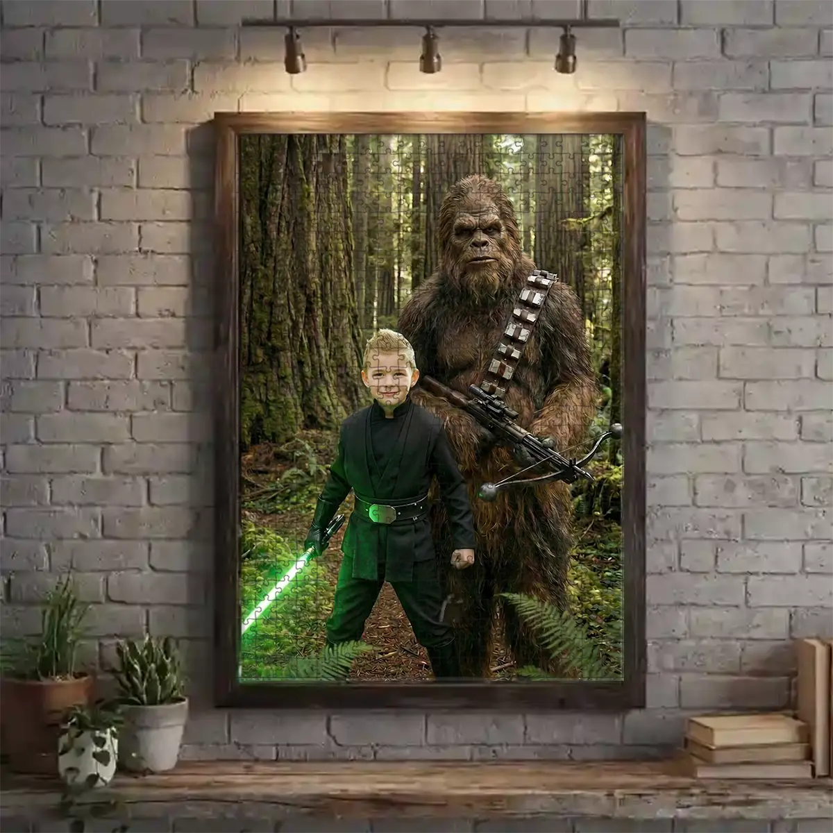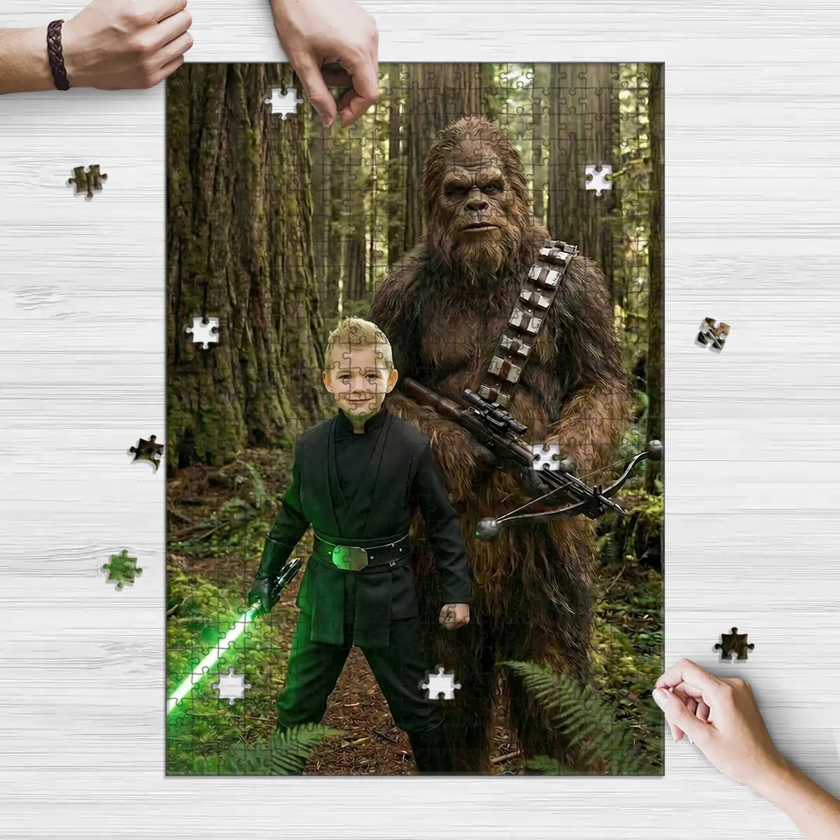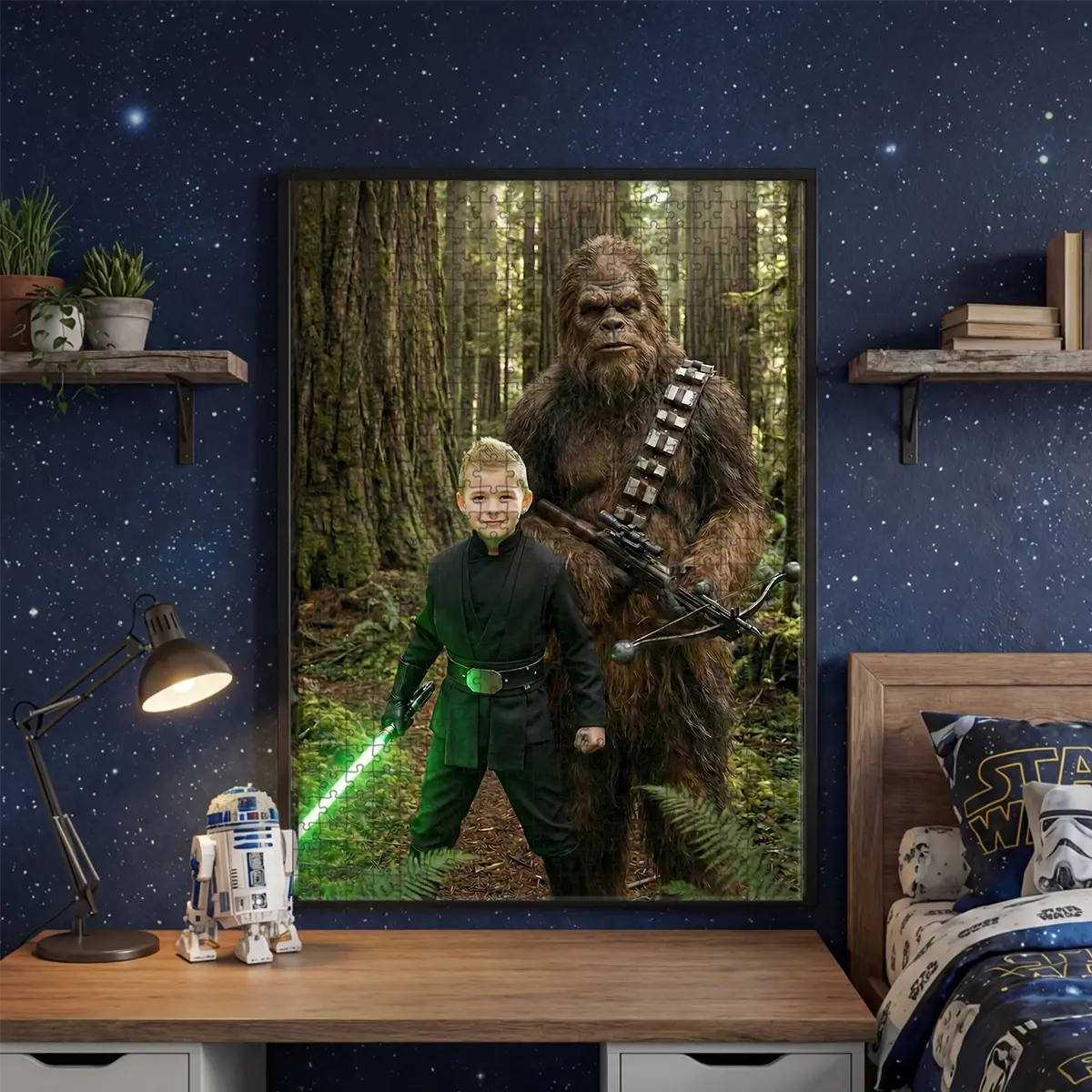 Custom Face Star Wars Boy with Bigfoot Wooden Jigsaw Puzzle | Funny Personalized Gift for Son