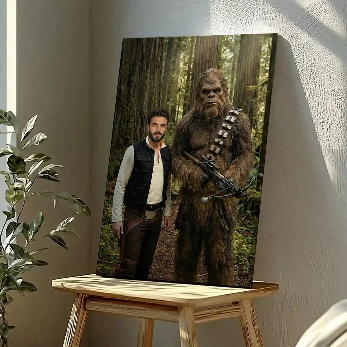 Ignite your dad’s adventurous spirit with our Custom Star Wars Portrait for Dad with Bigfoot Canvas. This personalized artwork transports him to a galaxy far, far away, or perhaps a hidden forest on Earth, where he embarks on an epic journey with a loyal, furry companion. It’s an ideal Valentine’s Day or Father’s Day gift for the husband who loves sci-fi, adventure, and a good laugh.