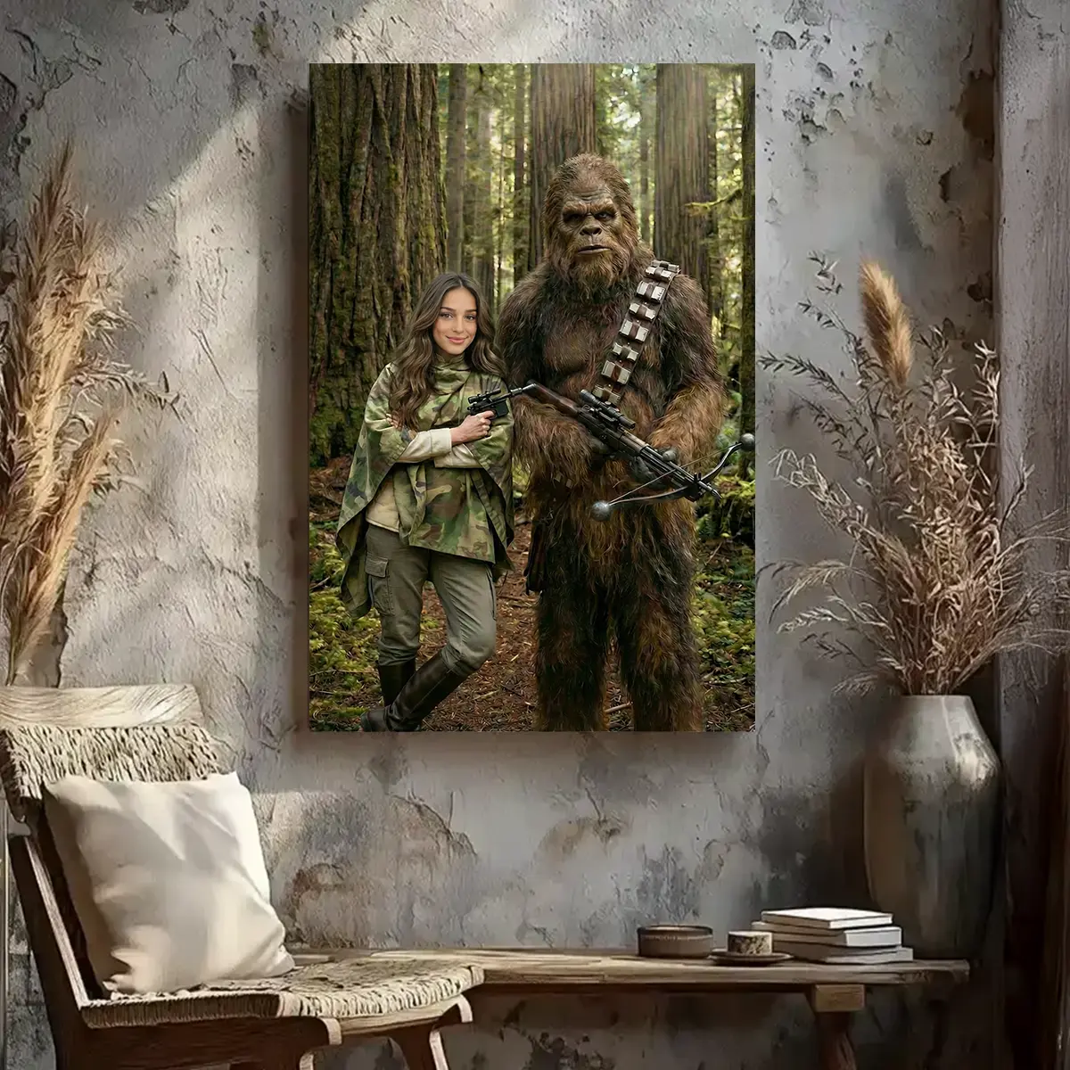 Custom Star Wars Portrait for Mom with Bigfoot Canvas | Funny Valentines Day Gift for Wife
