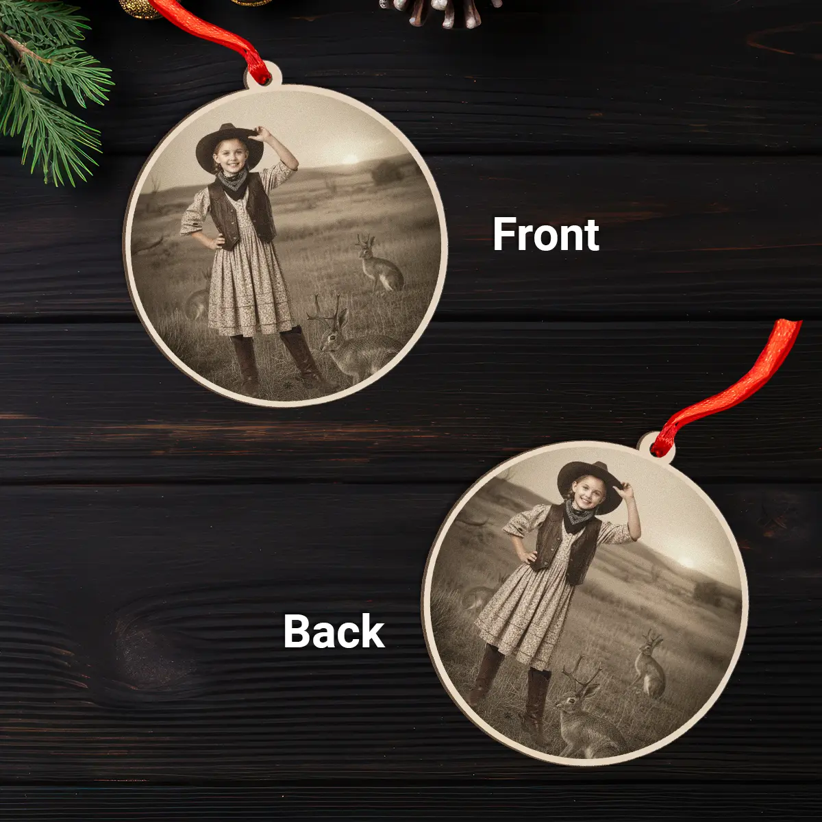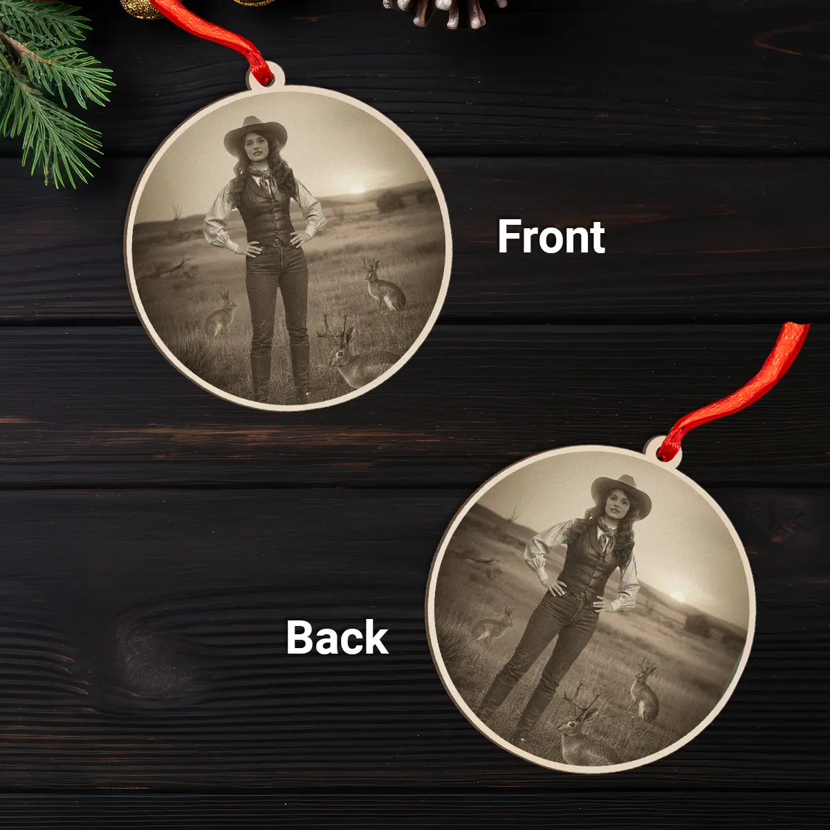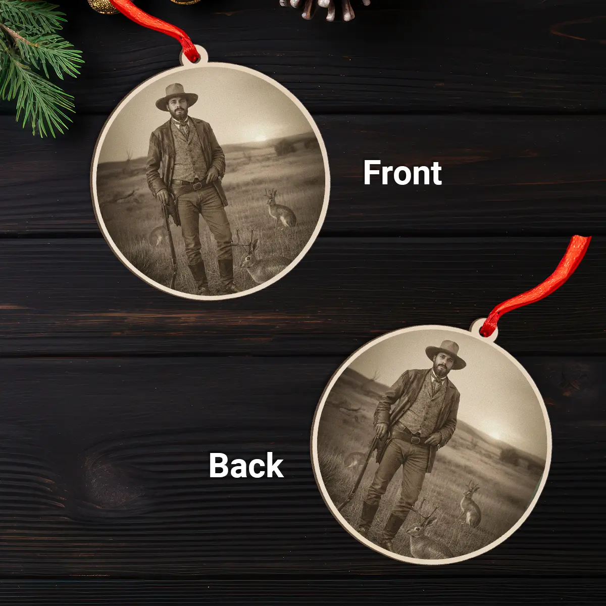 Hang a piece of rugged frontier history on your Christmas tree with our Personalized 1880s Jackalope Wooden Ornament.