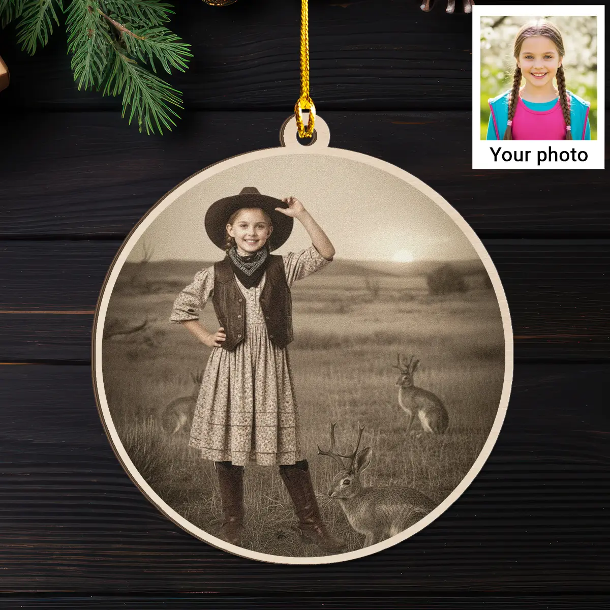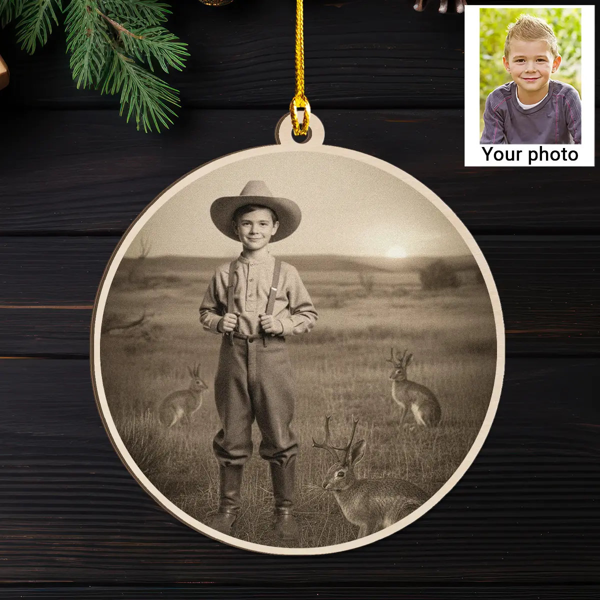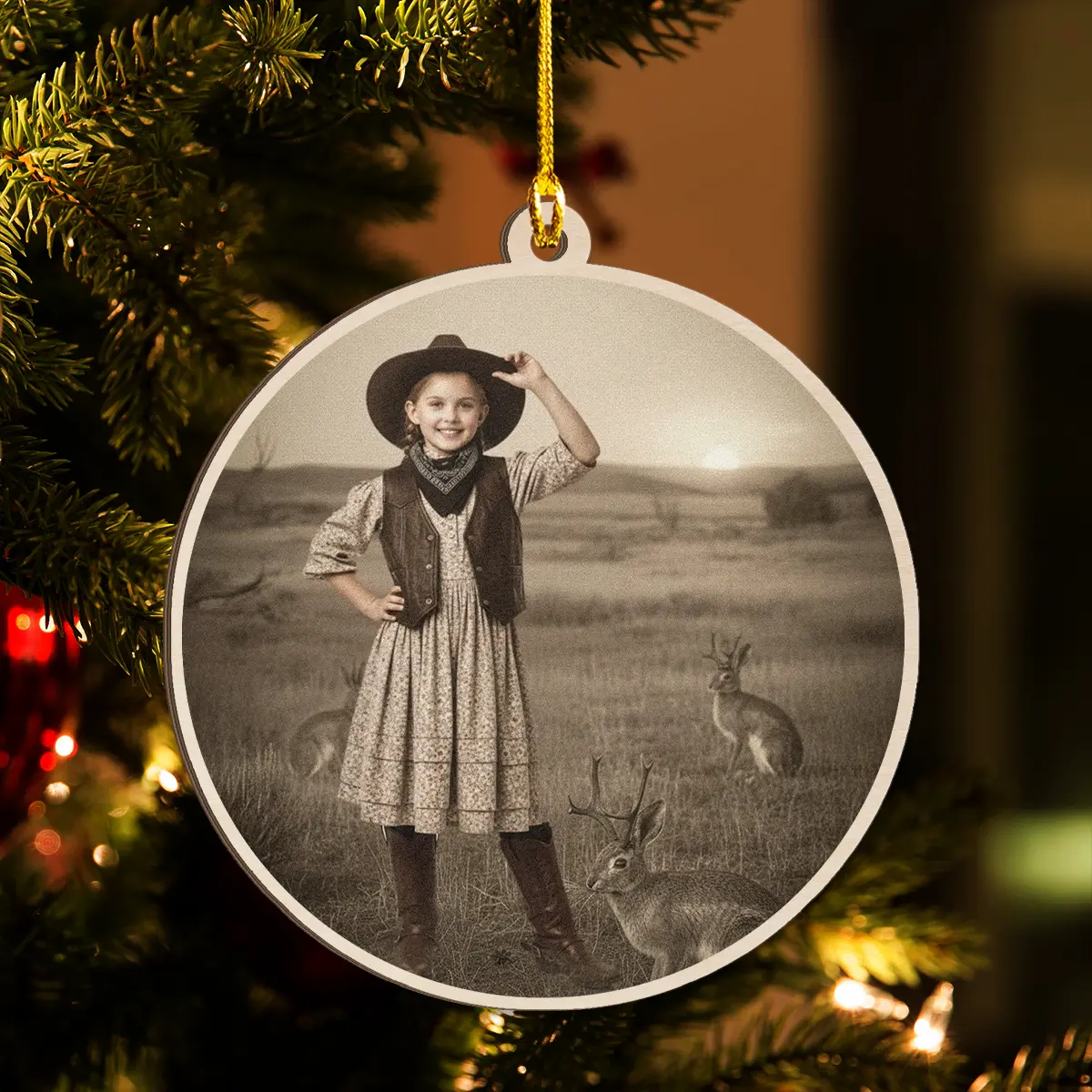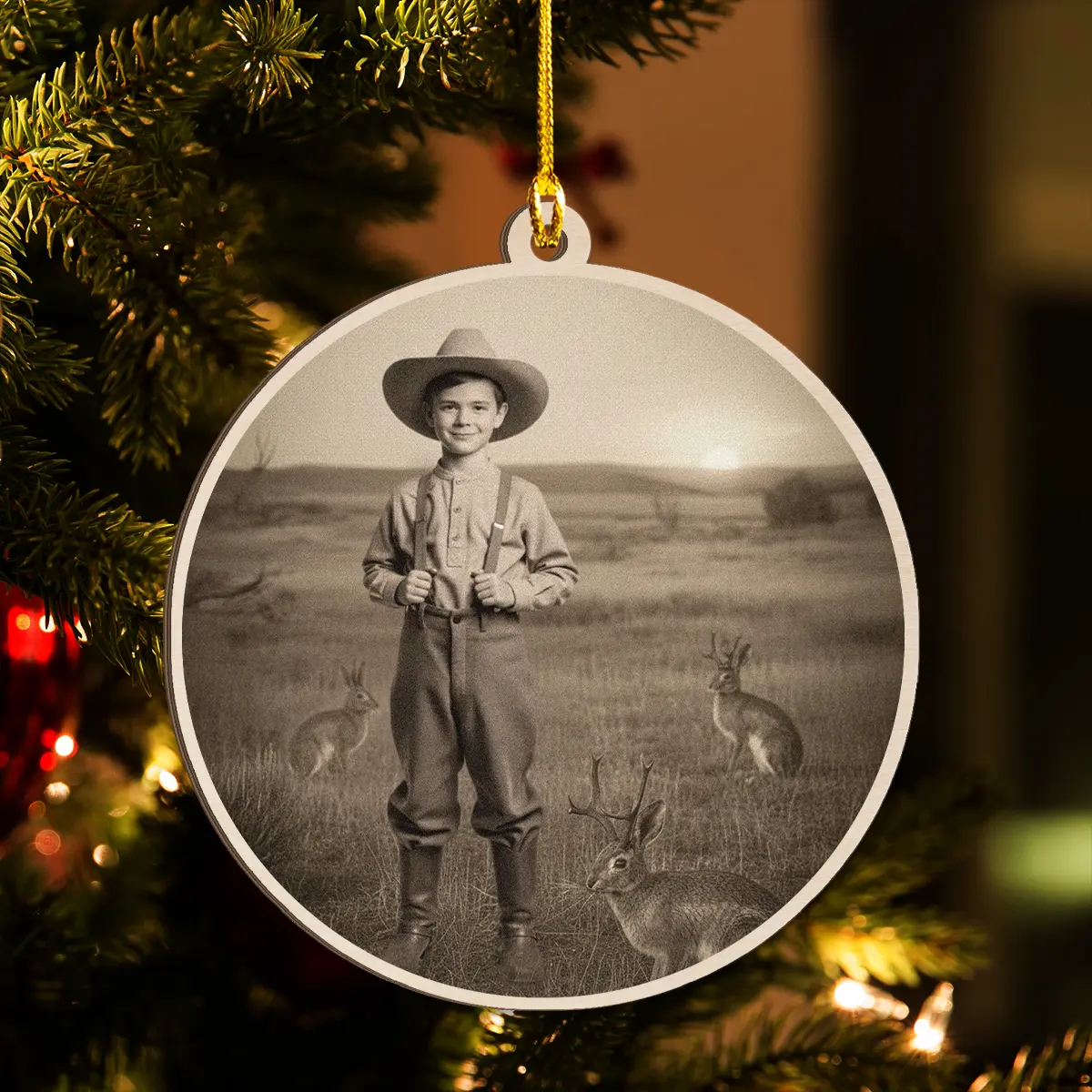 Hang a piece of rugged frontier history on your Christmas tree with our Personalized 1880s Jackalope Wooden Ornament.