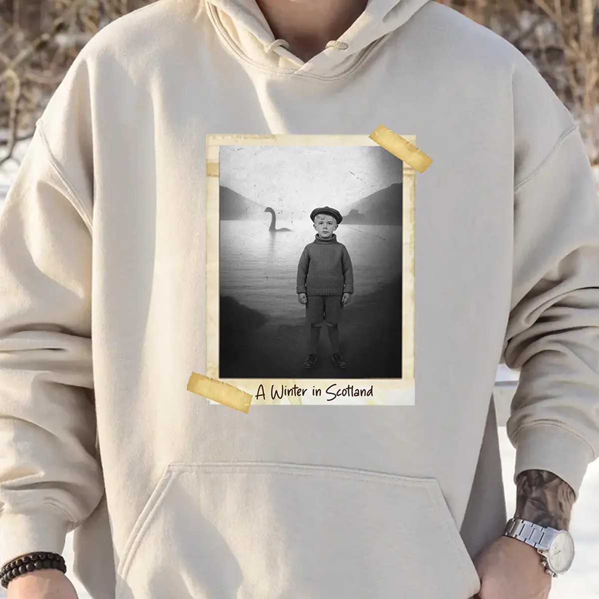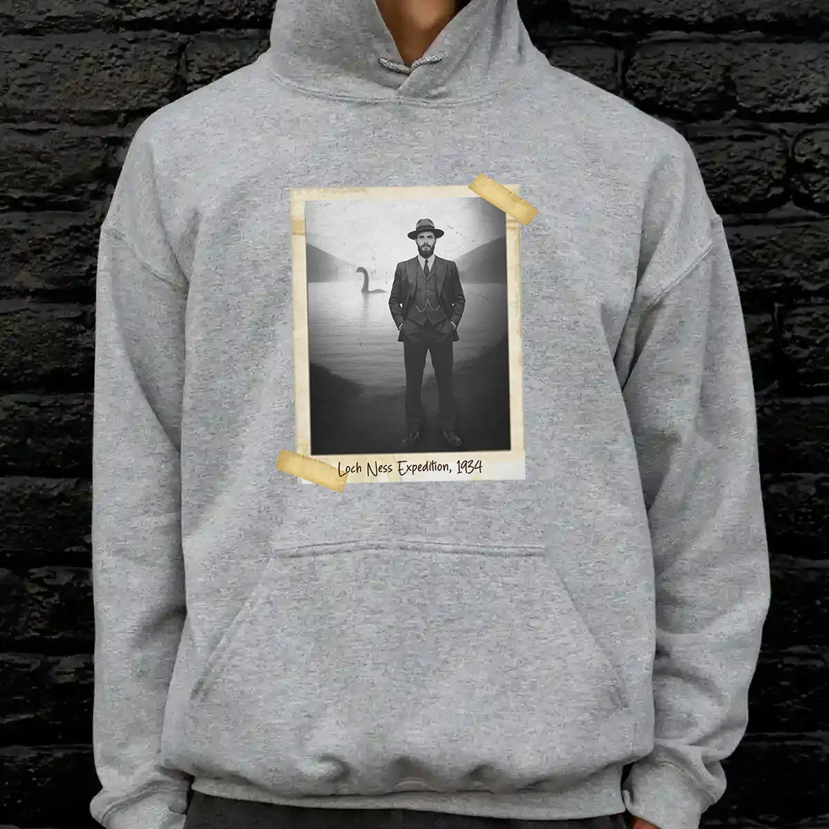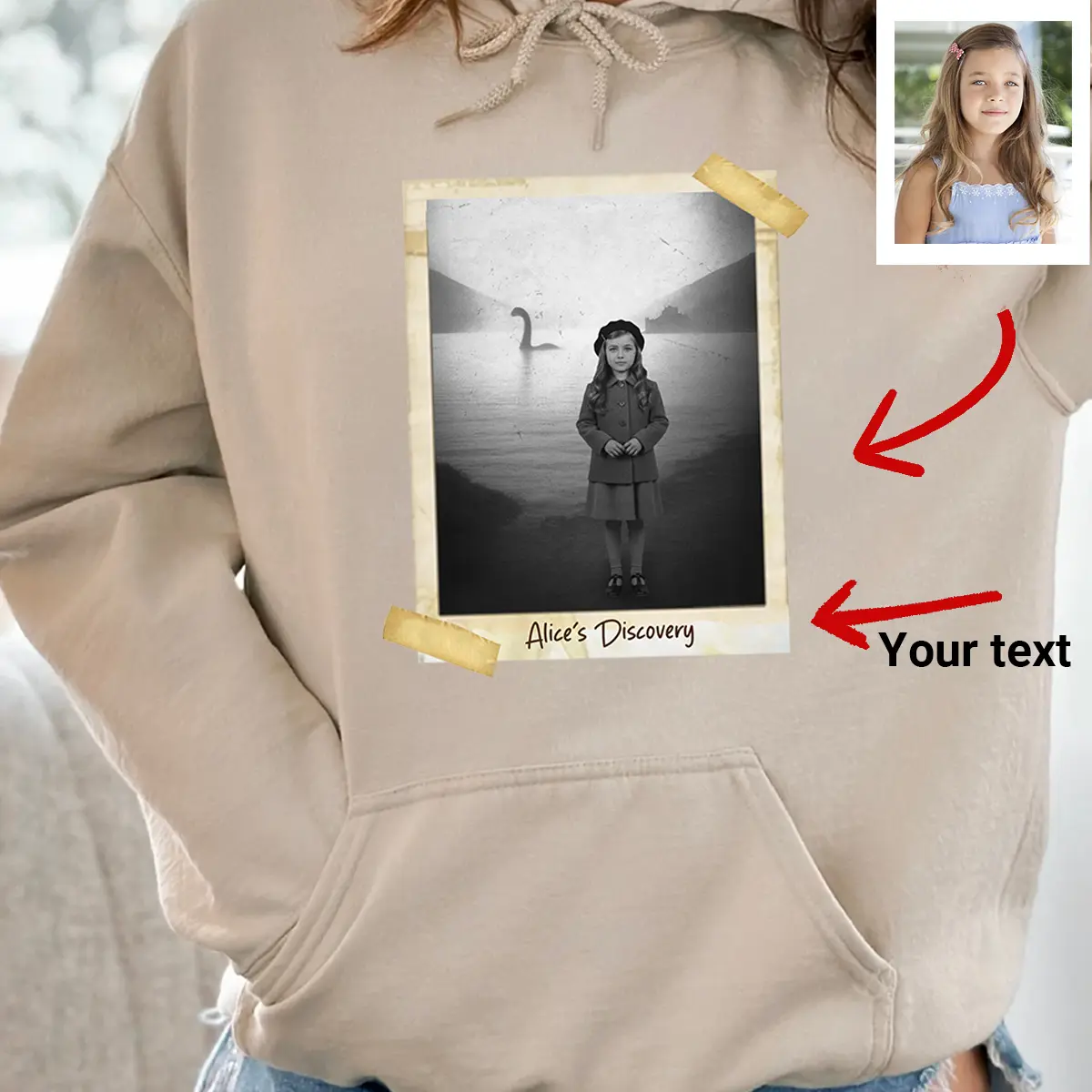 Personalized 1934 Nessie Hoodie | Custom Your Face in Vintage Loch Ness Monster Hooded Sweatshirt
