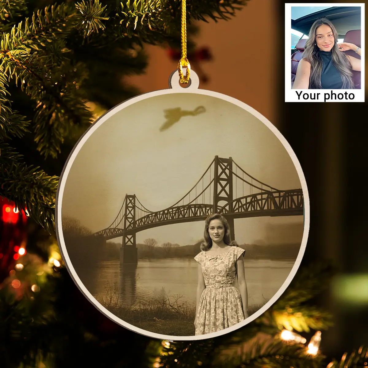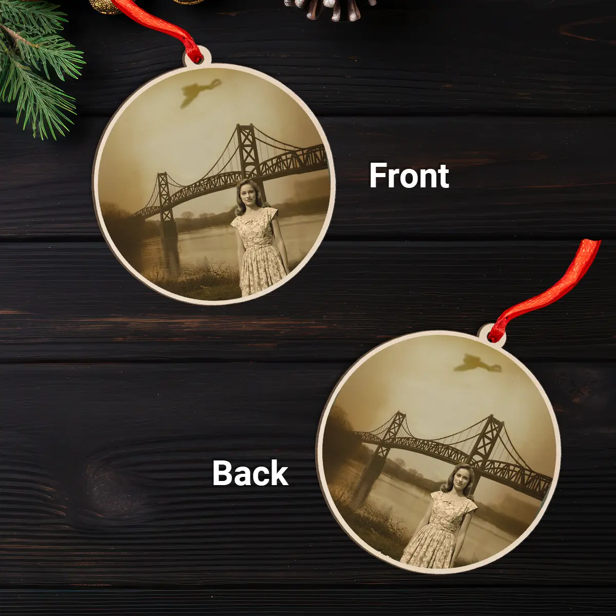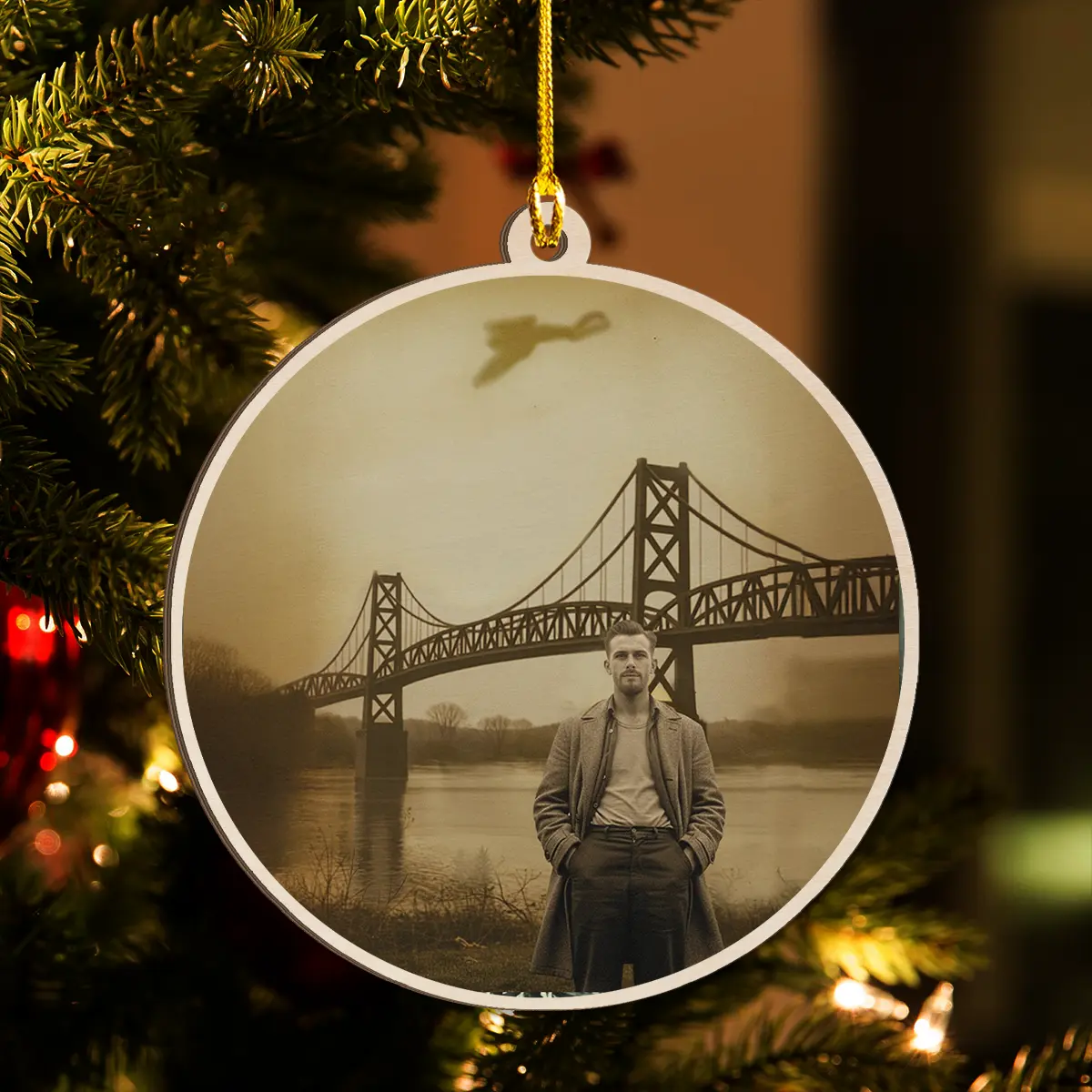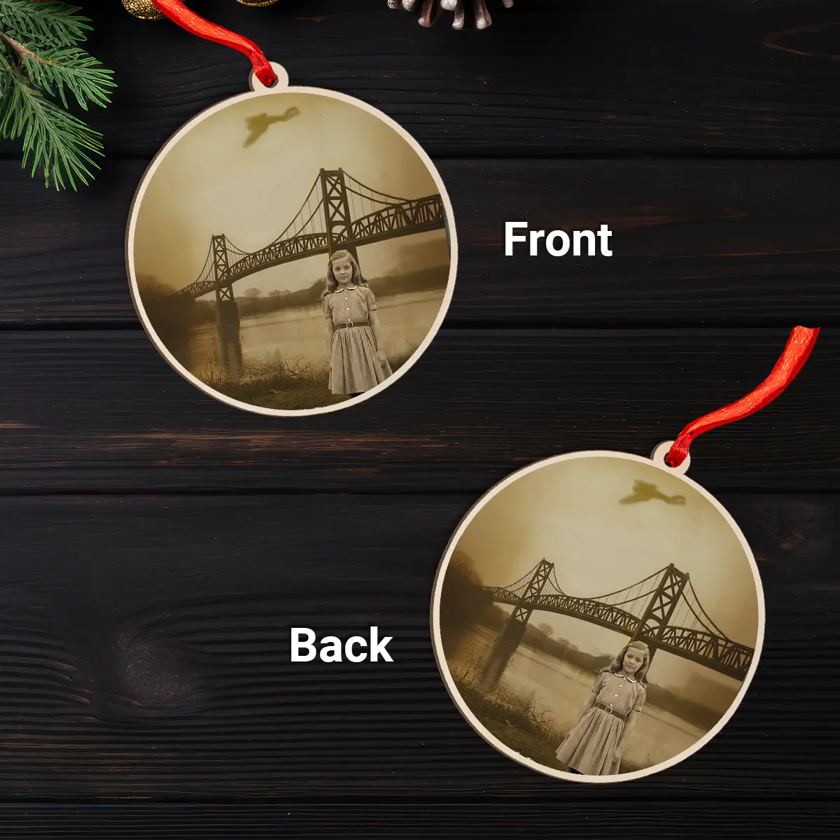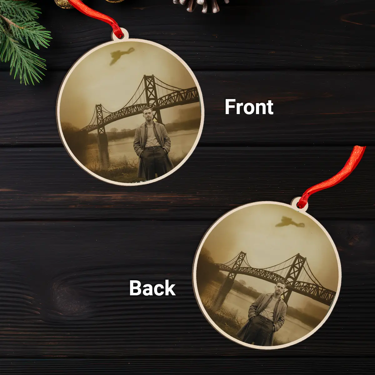 Step back in time to the eerie year of 1967 with our Personalized 1967 Mothman Sighting Wooden Ornament. Before the tragedy of 1967, whispers filled Point Pleasant of a dark omen above the Silver Bridge. This artwork places you in that final, haunting moment of calm before the collapse.