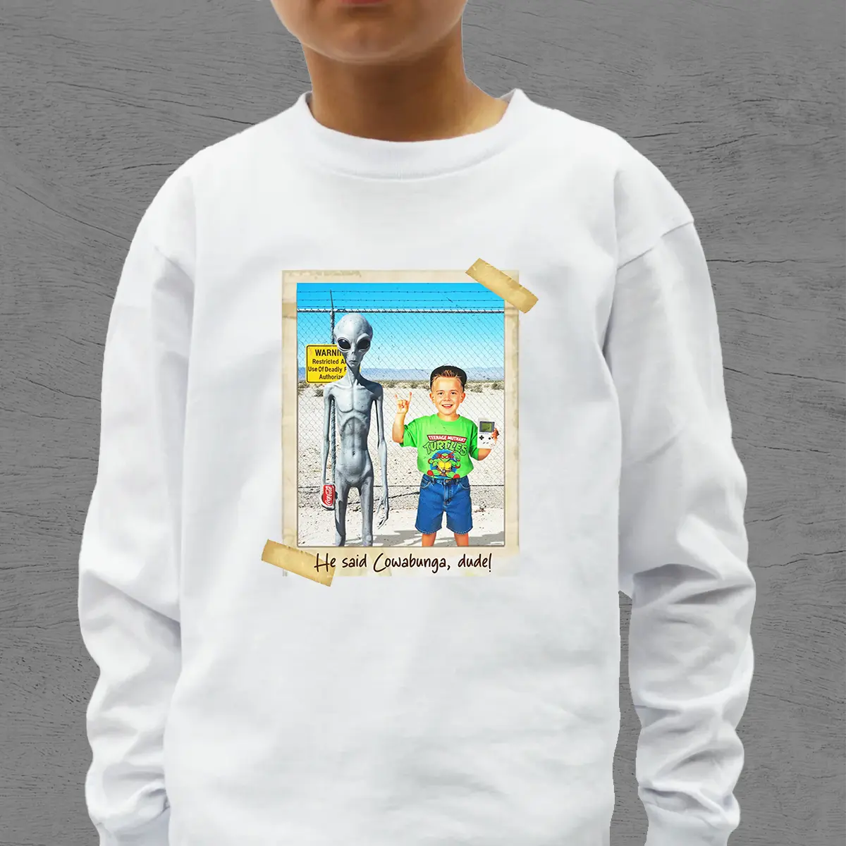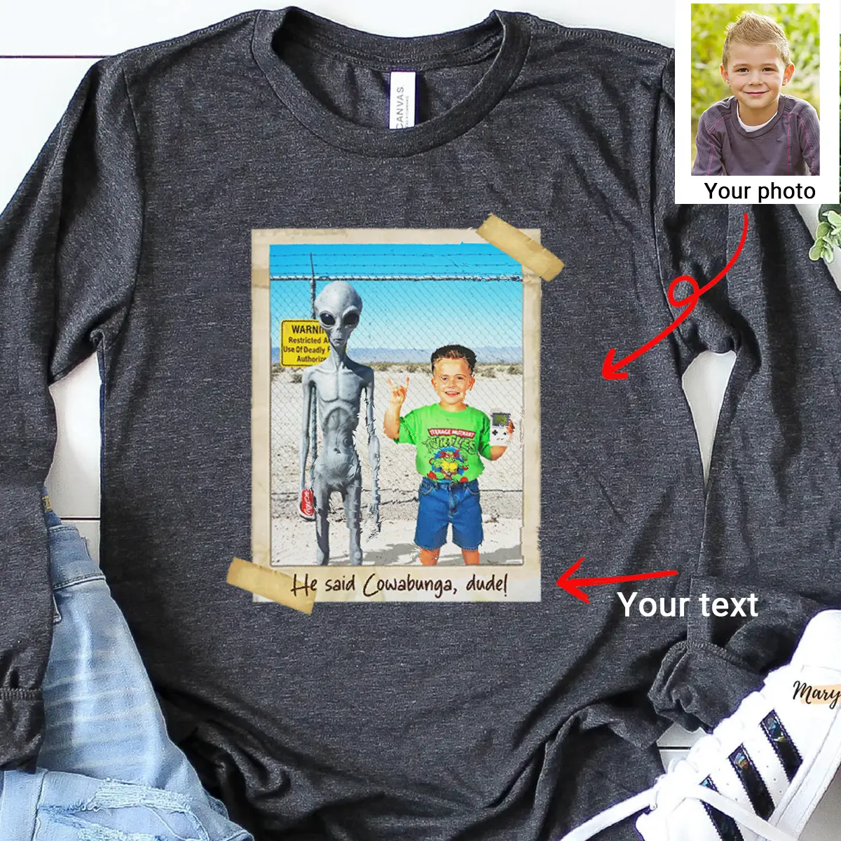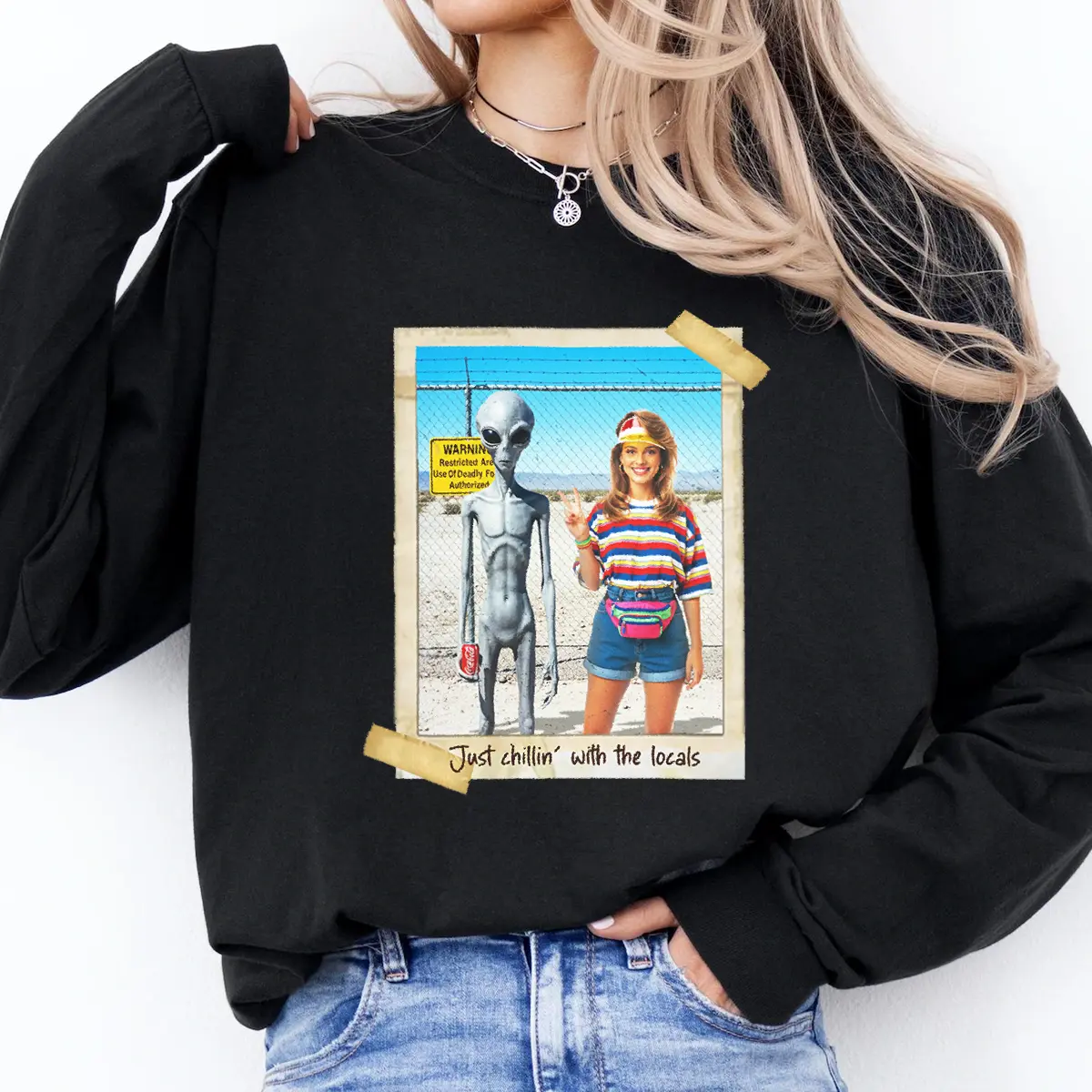 Your Personalized 90s Encounter with an Alien Local on a Long Sleeve Tee