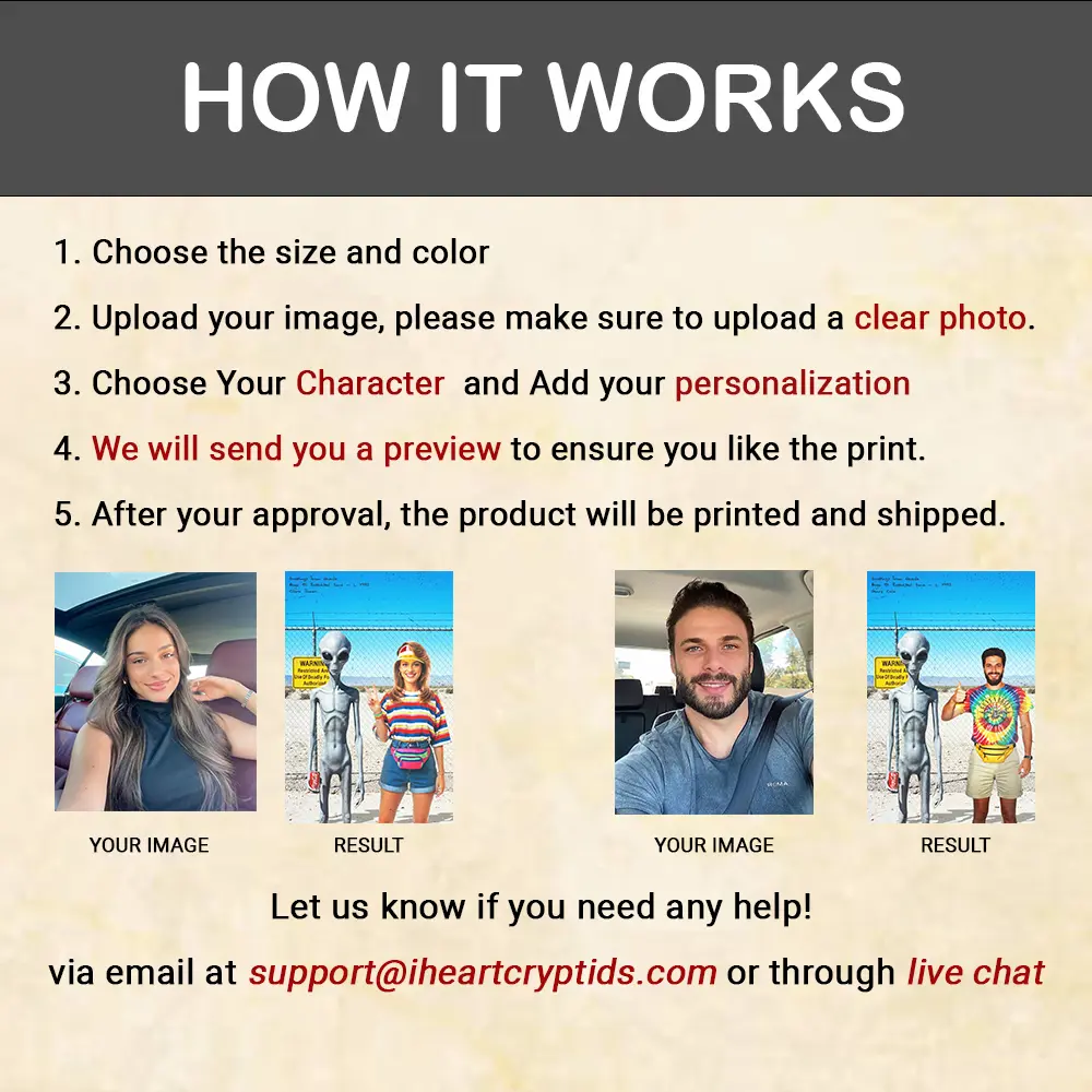 🖋️ Your Personalized Historical Note: The design features a short, funny, handwritten caption that turns your photo into a personalized meme. Examples include “Just chillin’ with the locals” or “Detour to Area 51, 1992.” (Check product images for specific captions!)