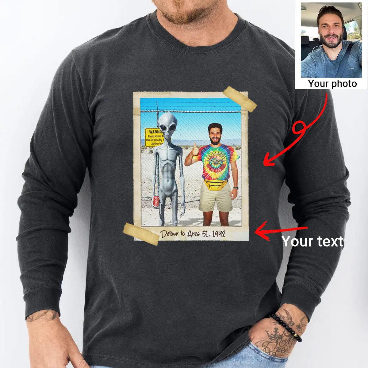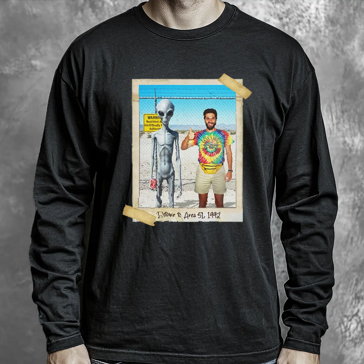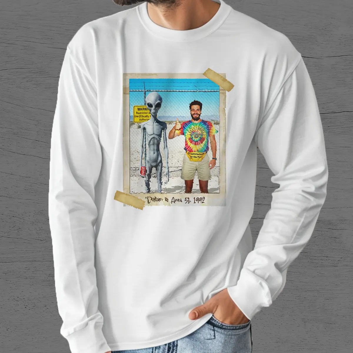Step into a time warp and show off your chill vibes with our Personalized 1990s Area 51 Alien Long Sleeve Tee.