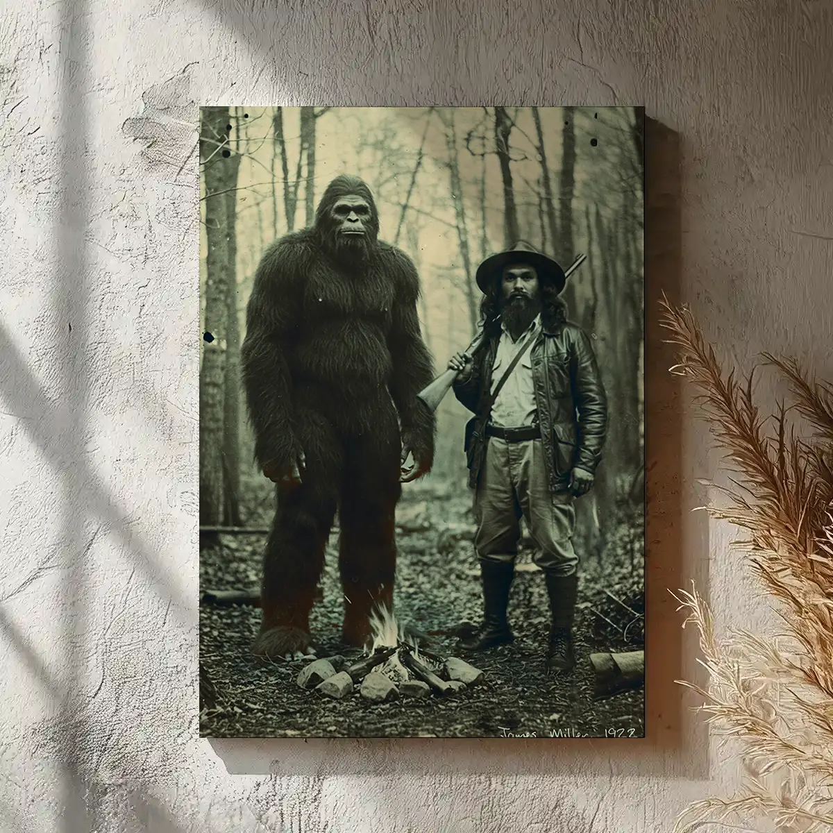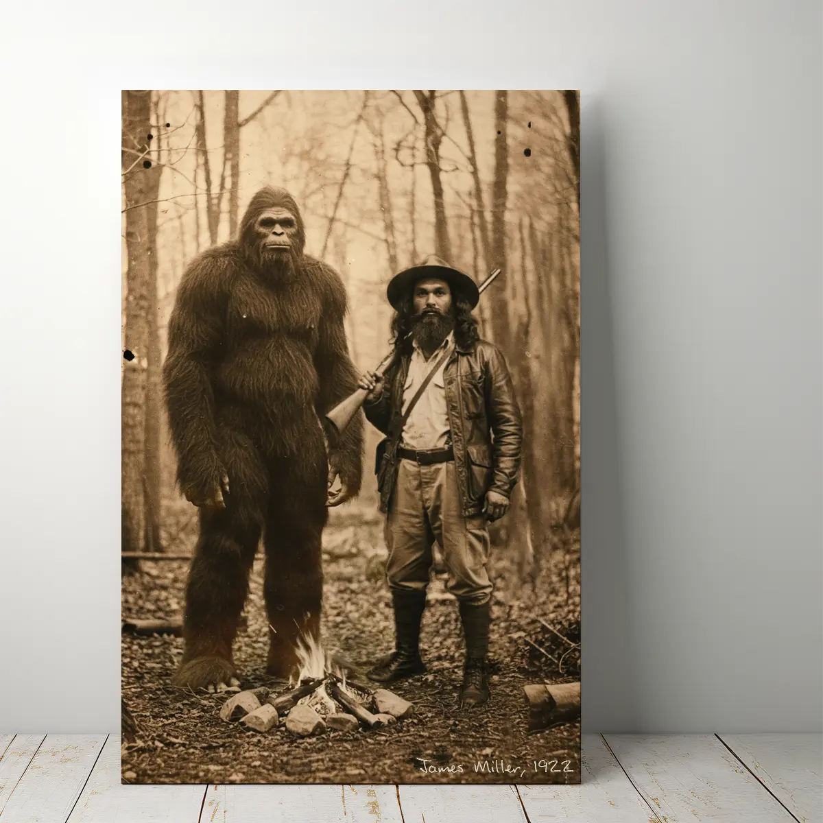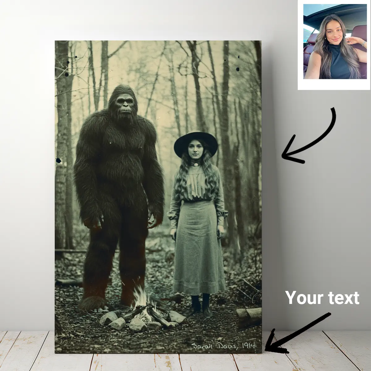 Travel back in time with this Personalized Bigfoot 1910s Portrait Canvas