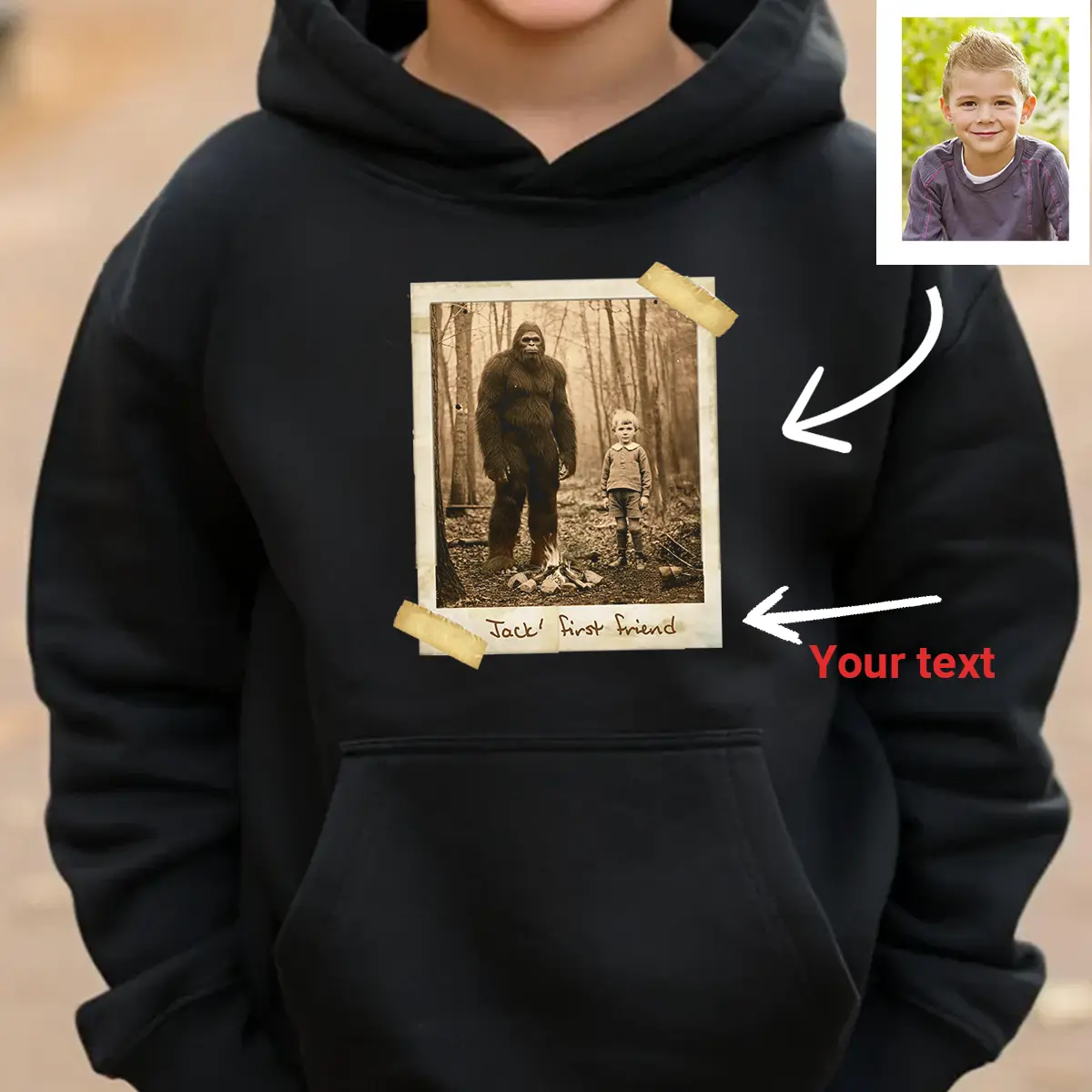 Personalized Bigfoot 1910s Portrait Hoodie | Vintage Custom Photo Hooded Sweatshirt