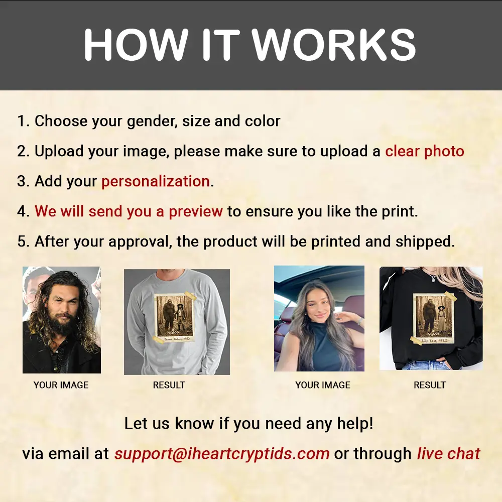Become a part of history with a truly one-of-a-kind piece of art. This isn’t just a simple face swap—it’s a personalized portrait that places you, in stunning historical detail, right beside the legendary Bigfoot.