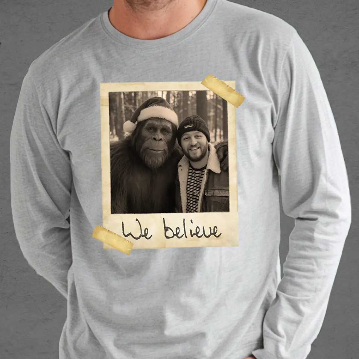 Personalized Bigfoot Christmas Long Sleeve Tee | Funny Custom Sasquatch Face Crewneck