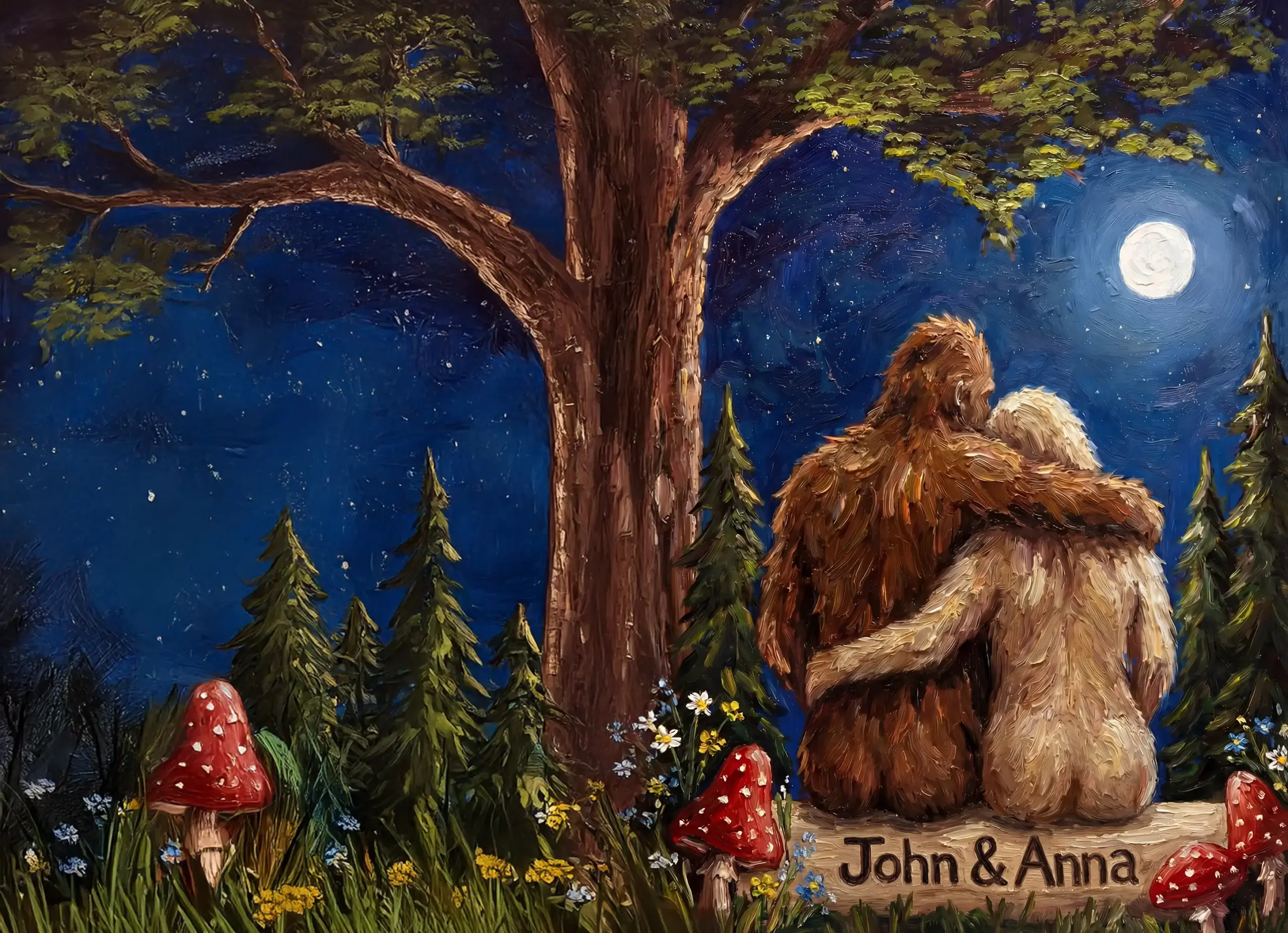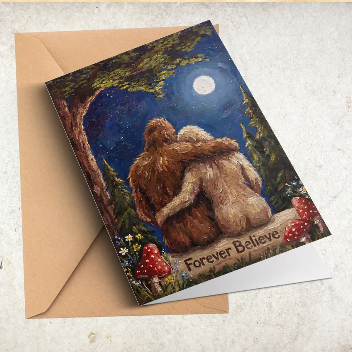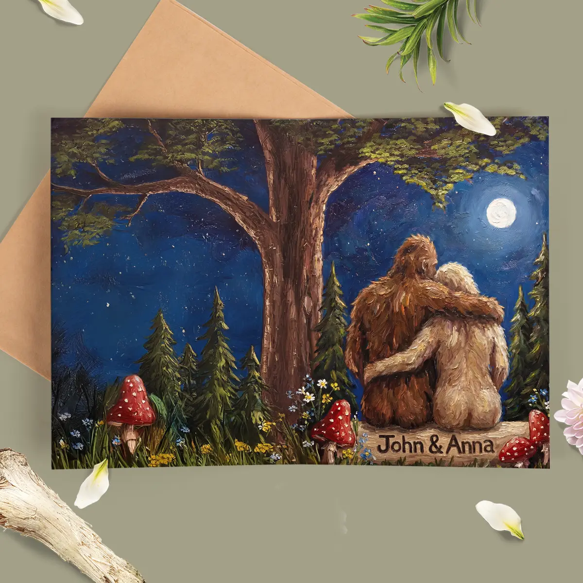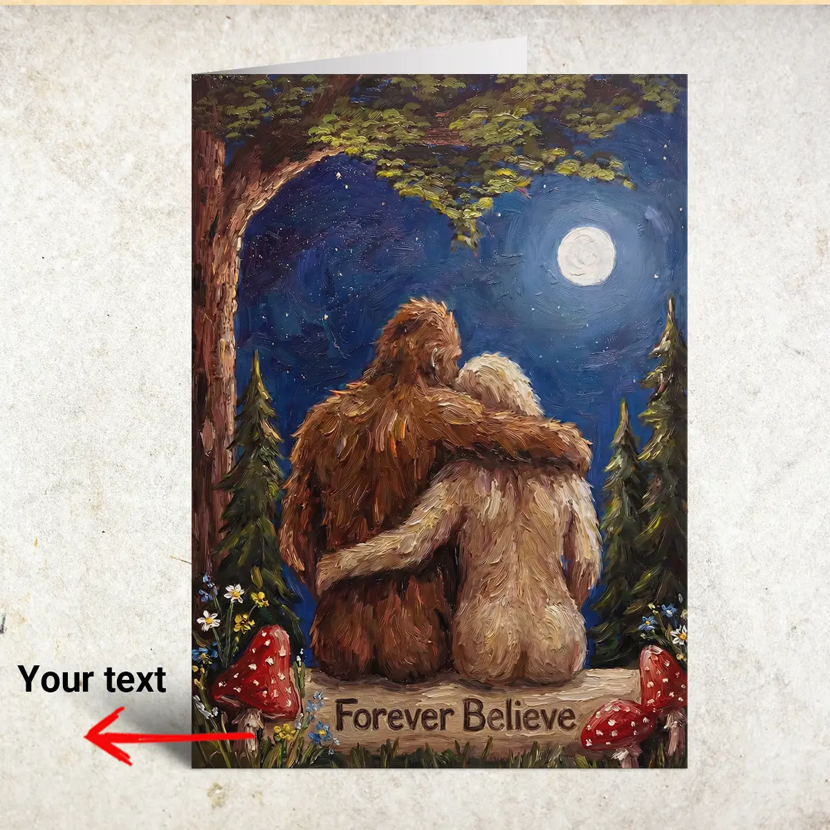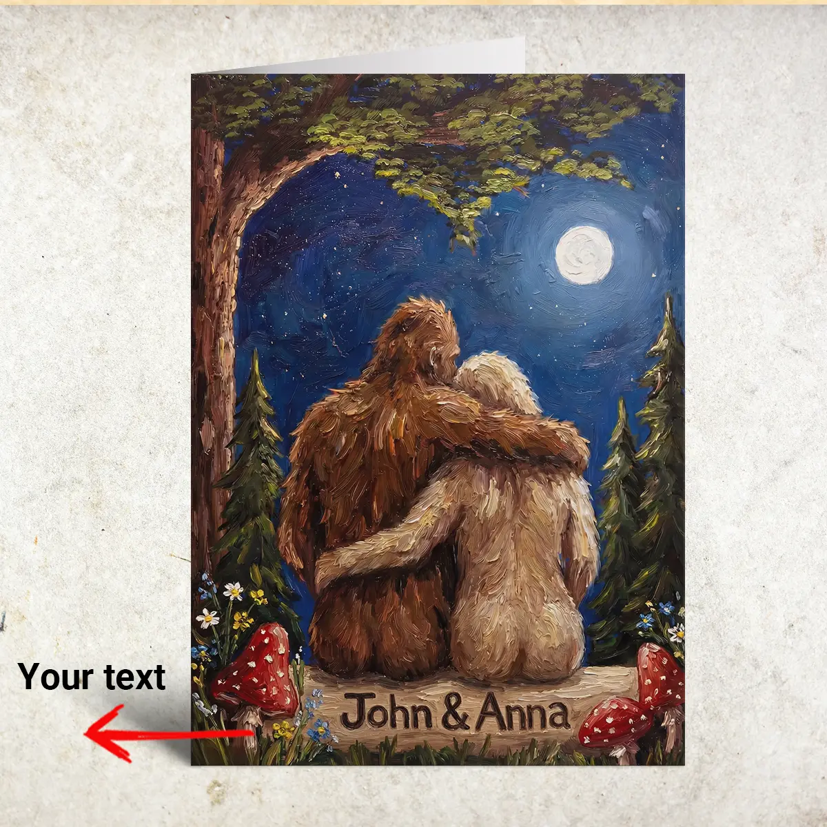 Personalized Bigfoot Couple Valentine Card | Romantic Van Gogh Sasquatch Anniversary Greeting Card