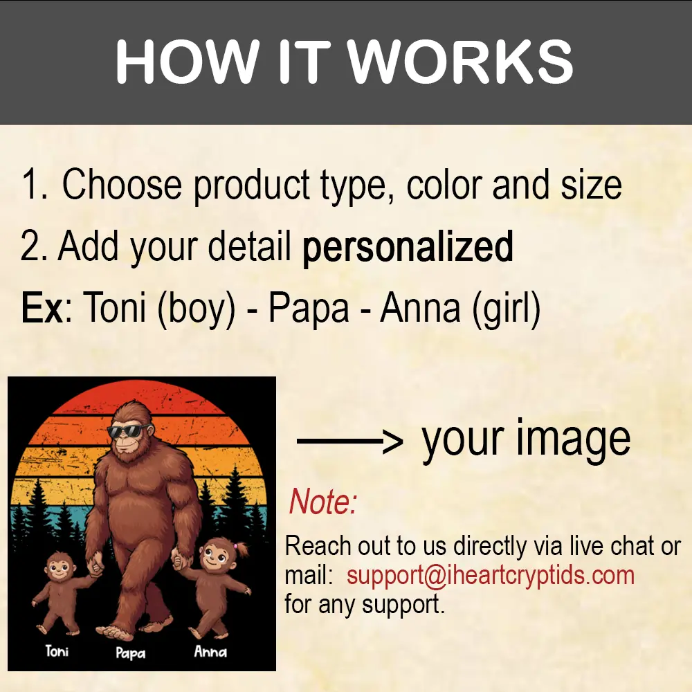 Celebrate the adventurous spirit of your dad with our Personalized Bigfoot Dad and Kids Shirt. This heartwarming design captures the unique bond of a Sasquatch family, making it an unforgettable Father’s Day gift for any legendary father figure.