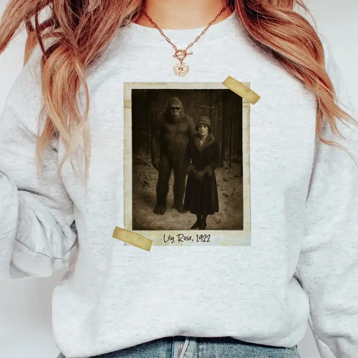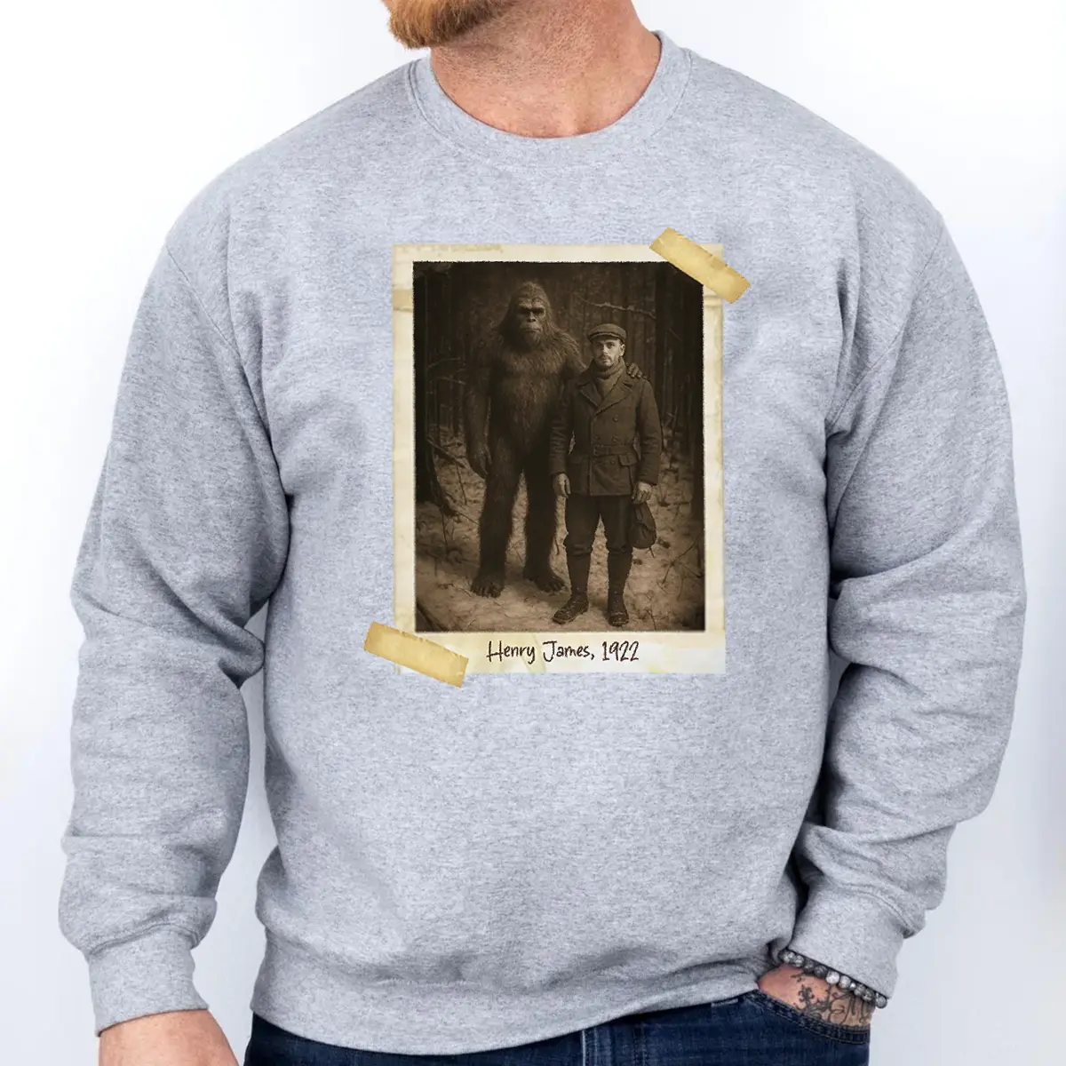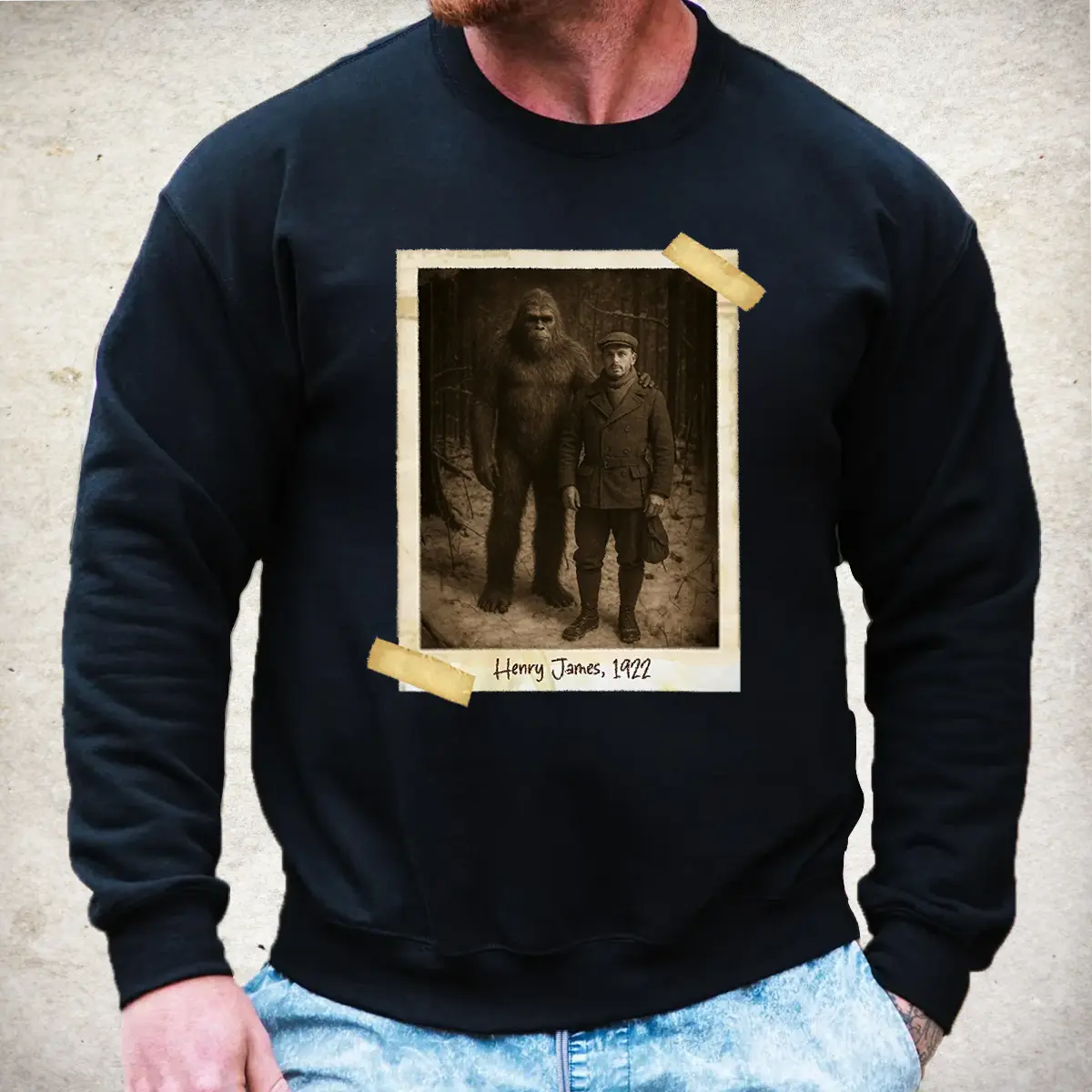 Personalized Bigfoot Photo 1920s Sweatshirt | Vintage Custom Sasquatch Pullover