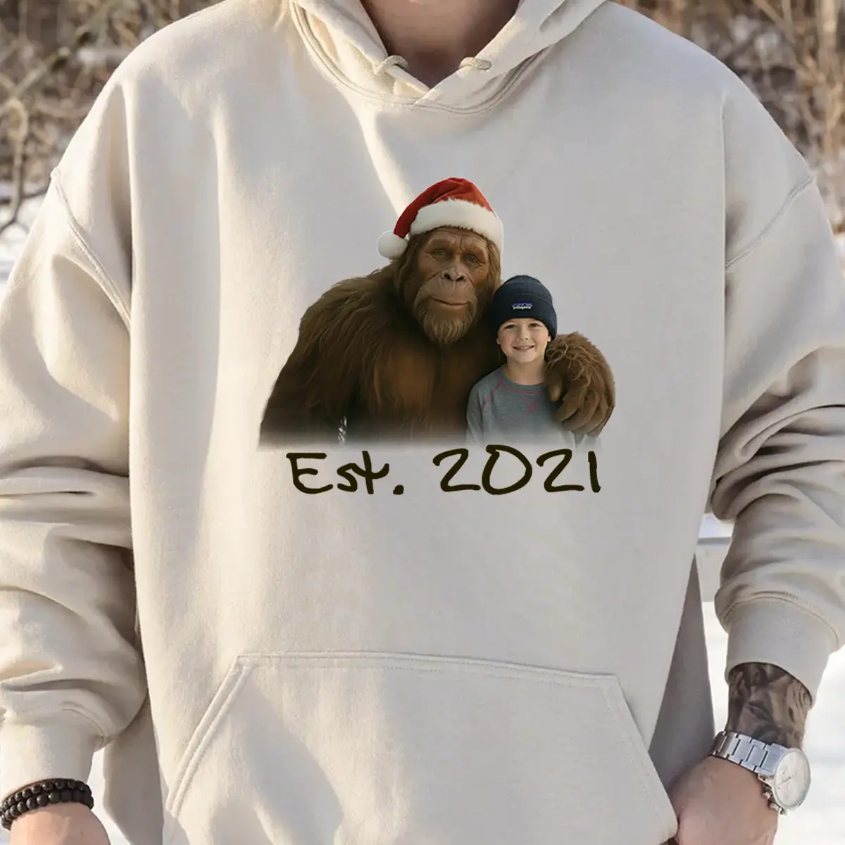 This holiday season, the truth is out there, and it’s picture perfect! Our Personalized Bigfoot Photo Christmas Hoodie features a humorous and heartwarming image of the iconic Bigfoot in a Santa hat posing with your loved one.