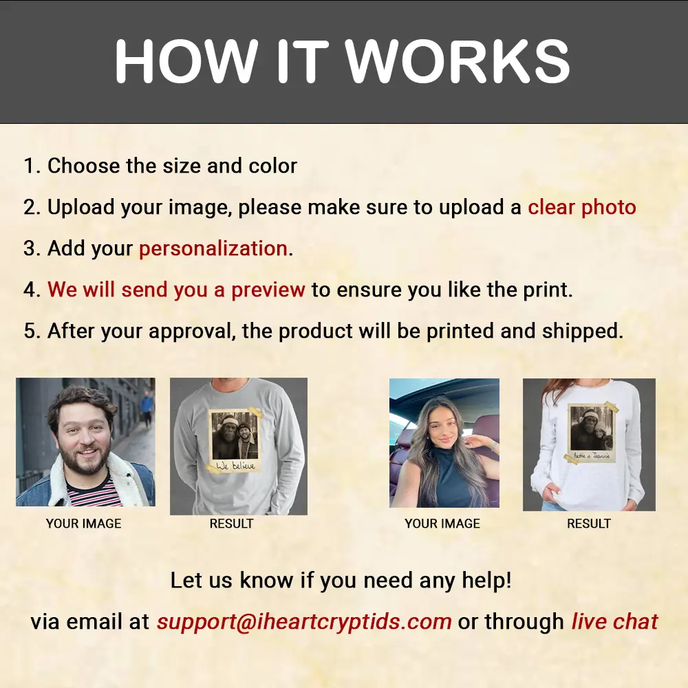 Ever dream of meeting the gentle giant of the woods? Now, you can bring that magical holiday encounter to life! Our personalized artwork places you or a loved one right beside the legendary Bigfoot for a truly one-of-a-kind portrait.