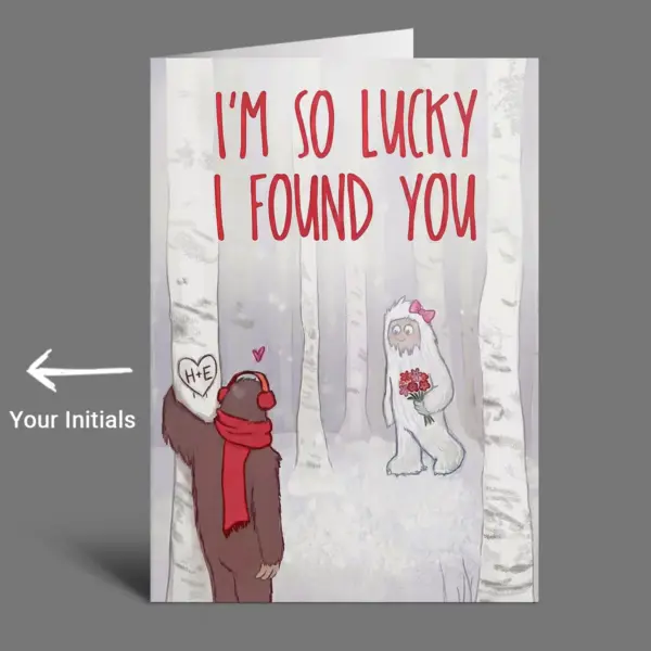 This unique card is ideal for Valentine’s Day, anniversaries, or simply to celebrate having found your perfect match. It beautifully blends the mystery of Bigfoot and Yeti with a touching message, creating a memorable keepsake for your beloved.