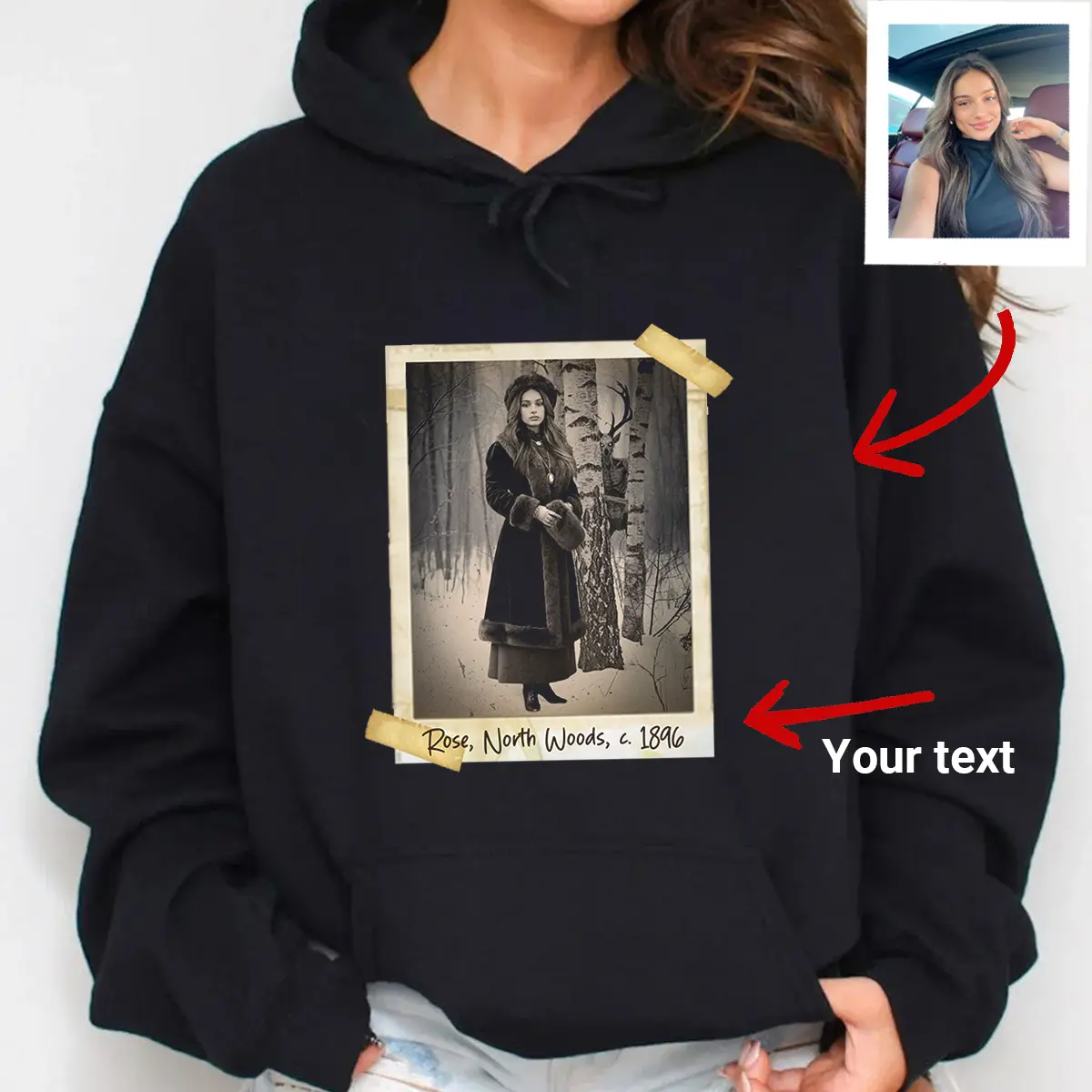 Personalized Wendigo Hoodie | Custom Face 19th Century Photo, Gothic Horror Cryptid Hooded Sweatshirt