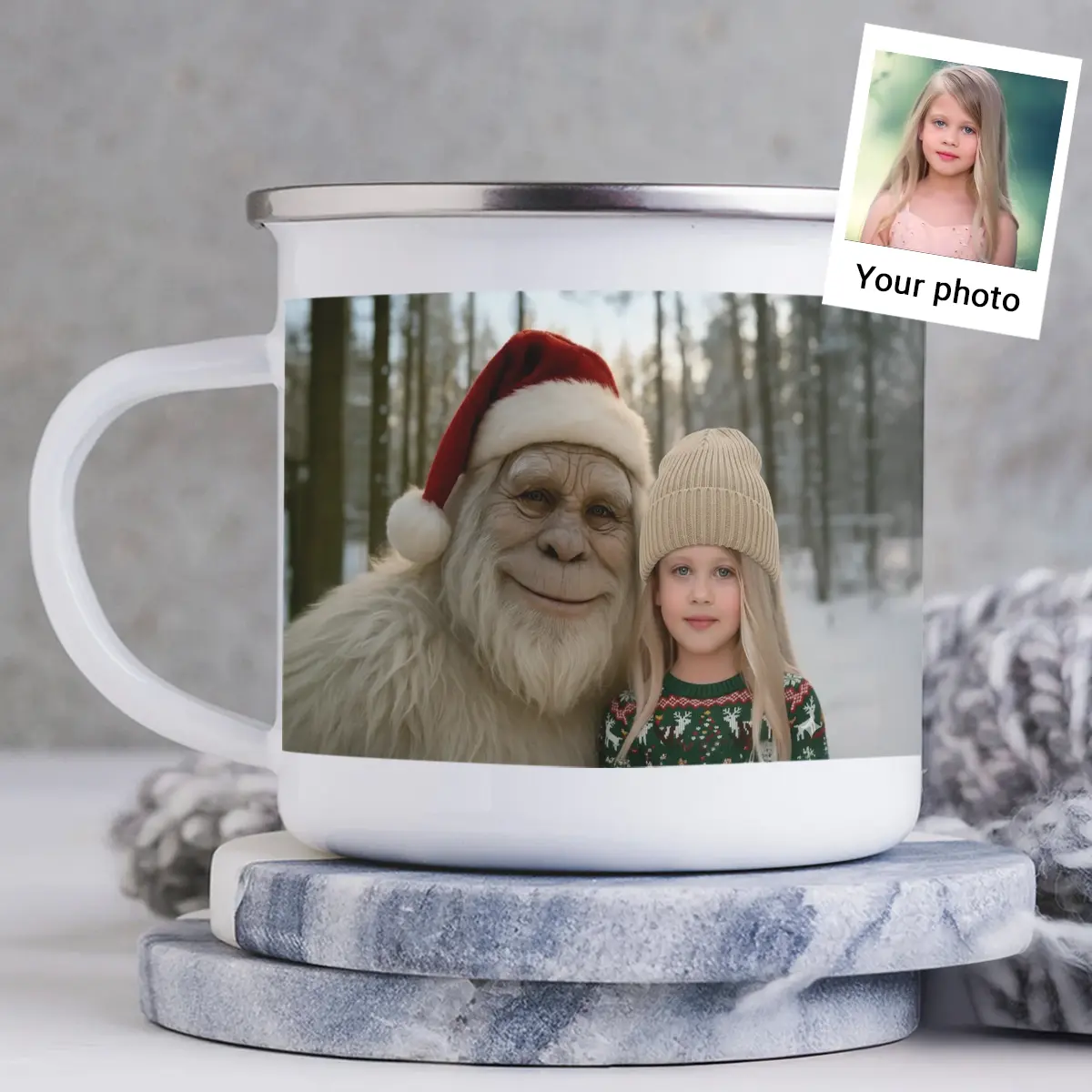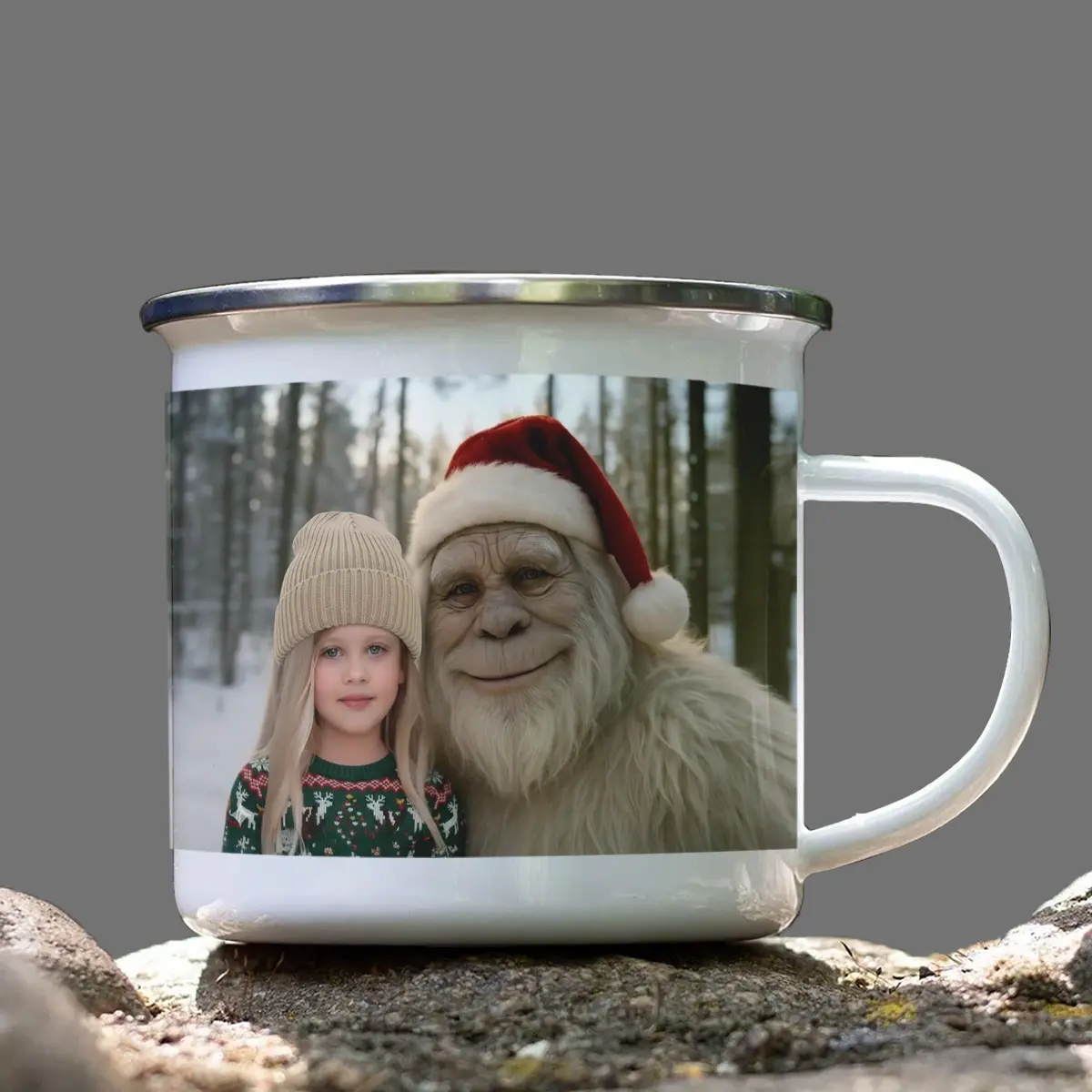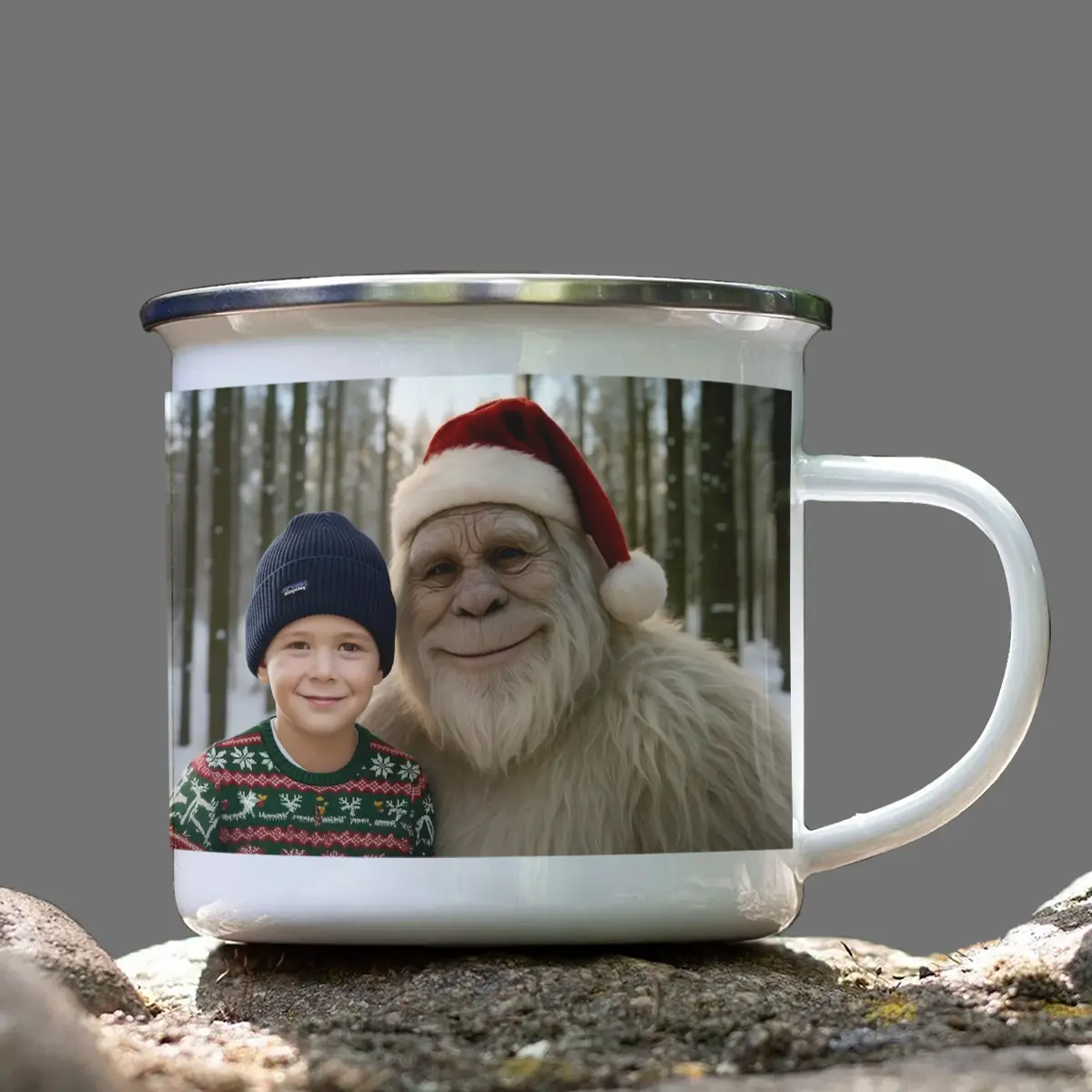 Personalized Yeti Christmas Camping Mug | Custom Photo Enamel Mug, Magical Keepsake