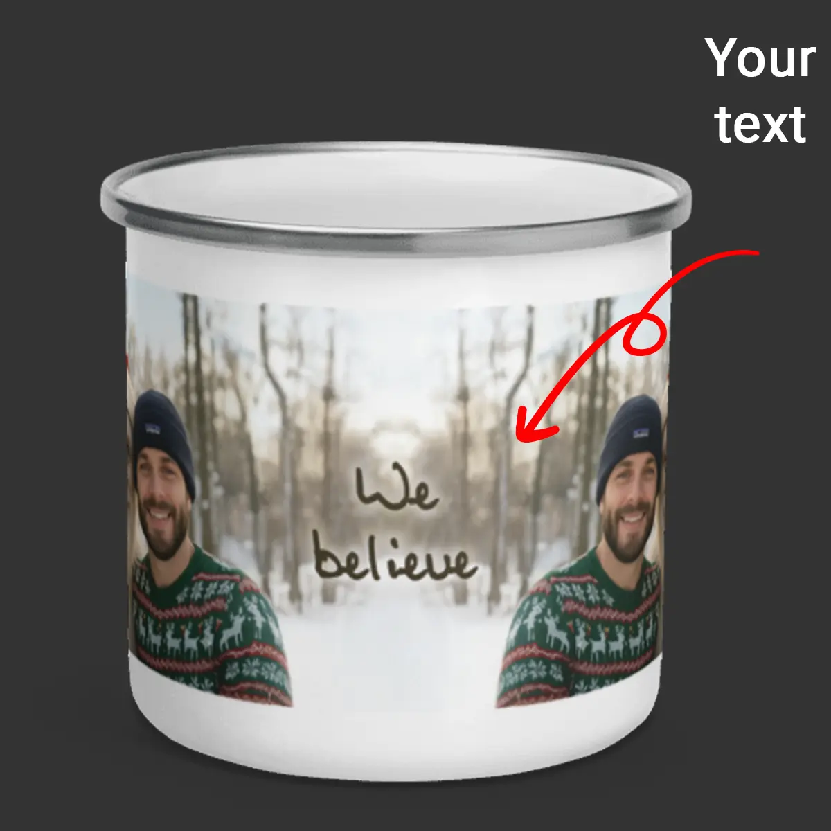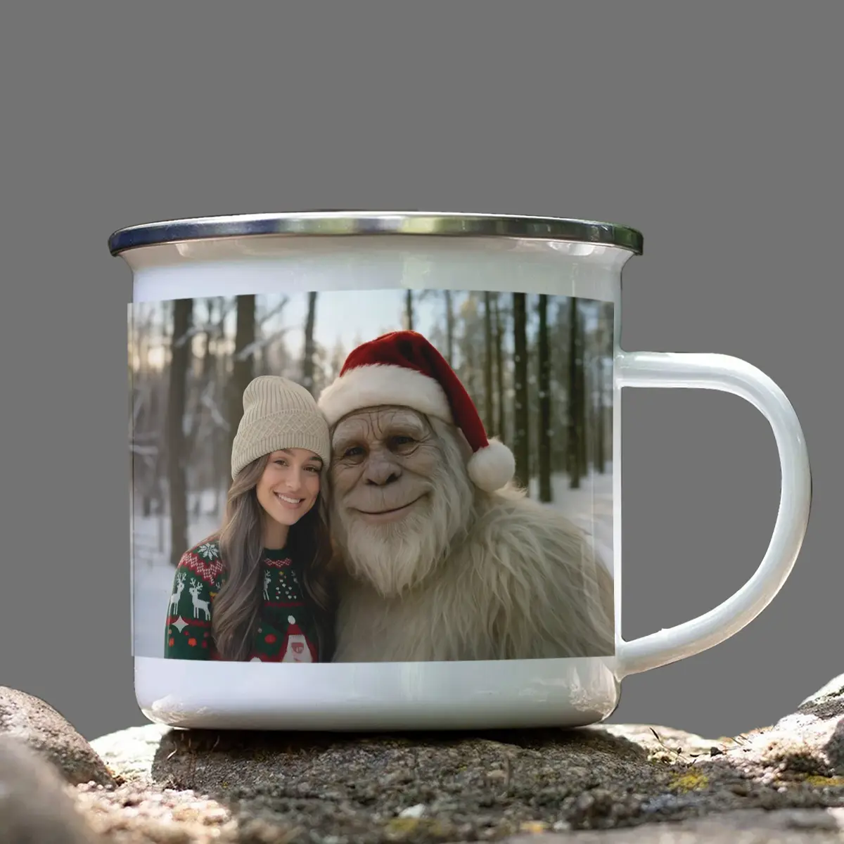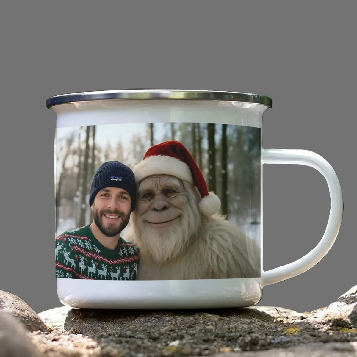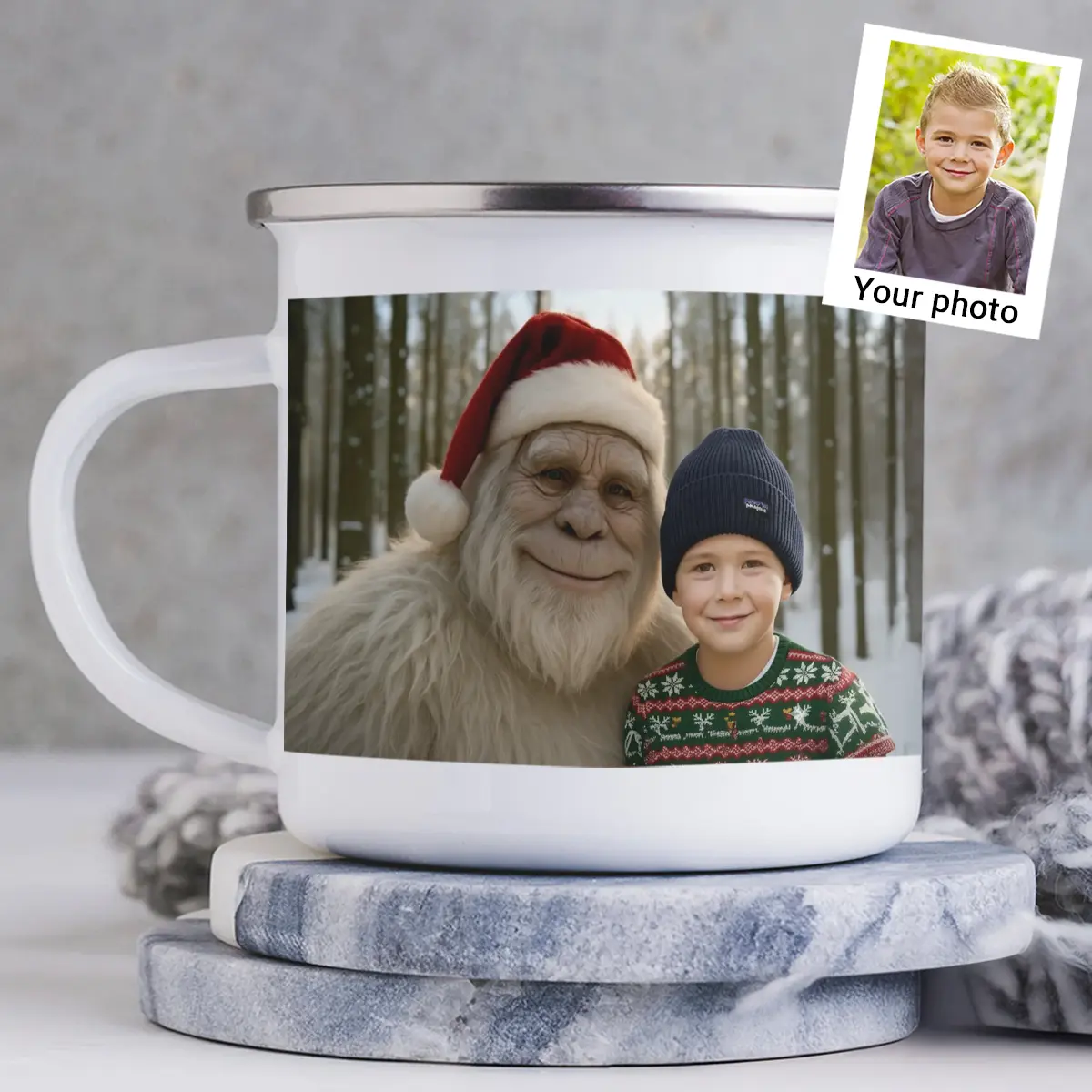 Personalized Yeti Christmas Camping Mug | Custom Photo Enamel Mug, Magical Keepsake